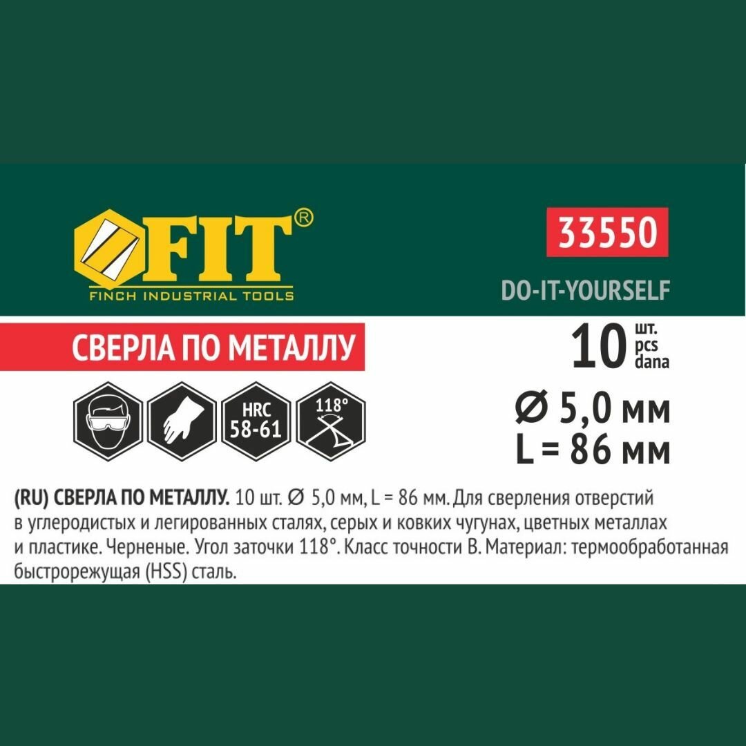 Сверла по металлу HSS черненые 5,0x86 мм (10 шт.) FIT 33550