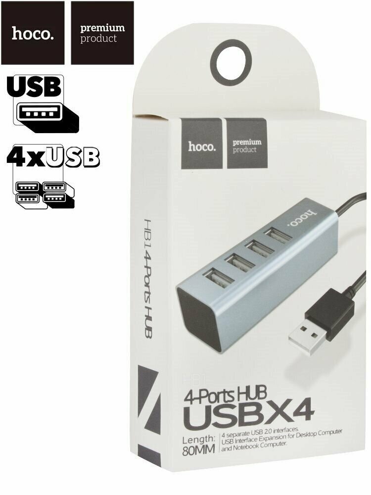 Хаб USB Hoco HB1 USB-4USB, 80cm, серый, 1 шт.
