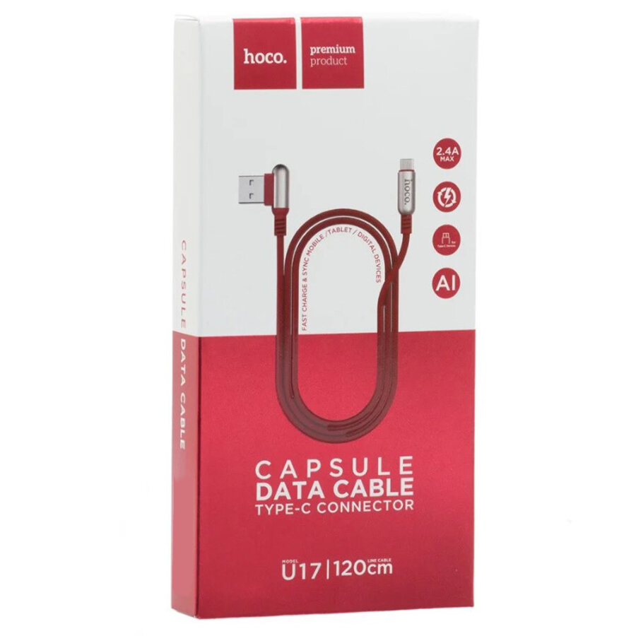 Кабель USB HOCO U17 Micro Capsule, USB - MicroUSB, 2.4А, 1.2 м, красный