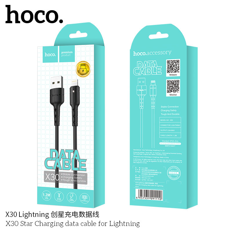 Кабель для айфон USB HOCO X30 Star USB - Lightning, 2А, 1.2 м, черный