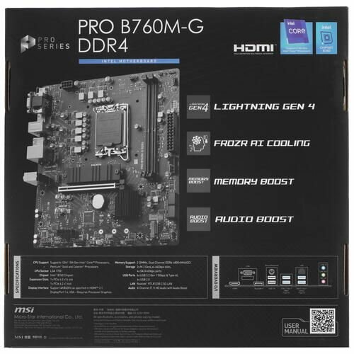 Материнская плата MSI PRO B760M-G DDR4, Socket1700, Intel B760, mATX интересное:
