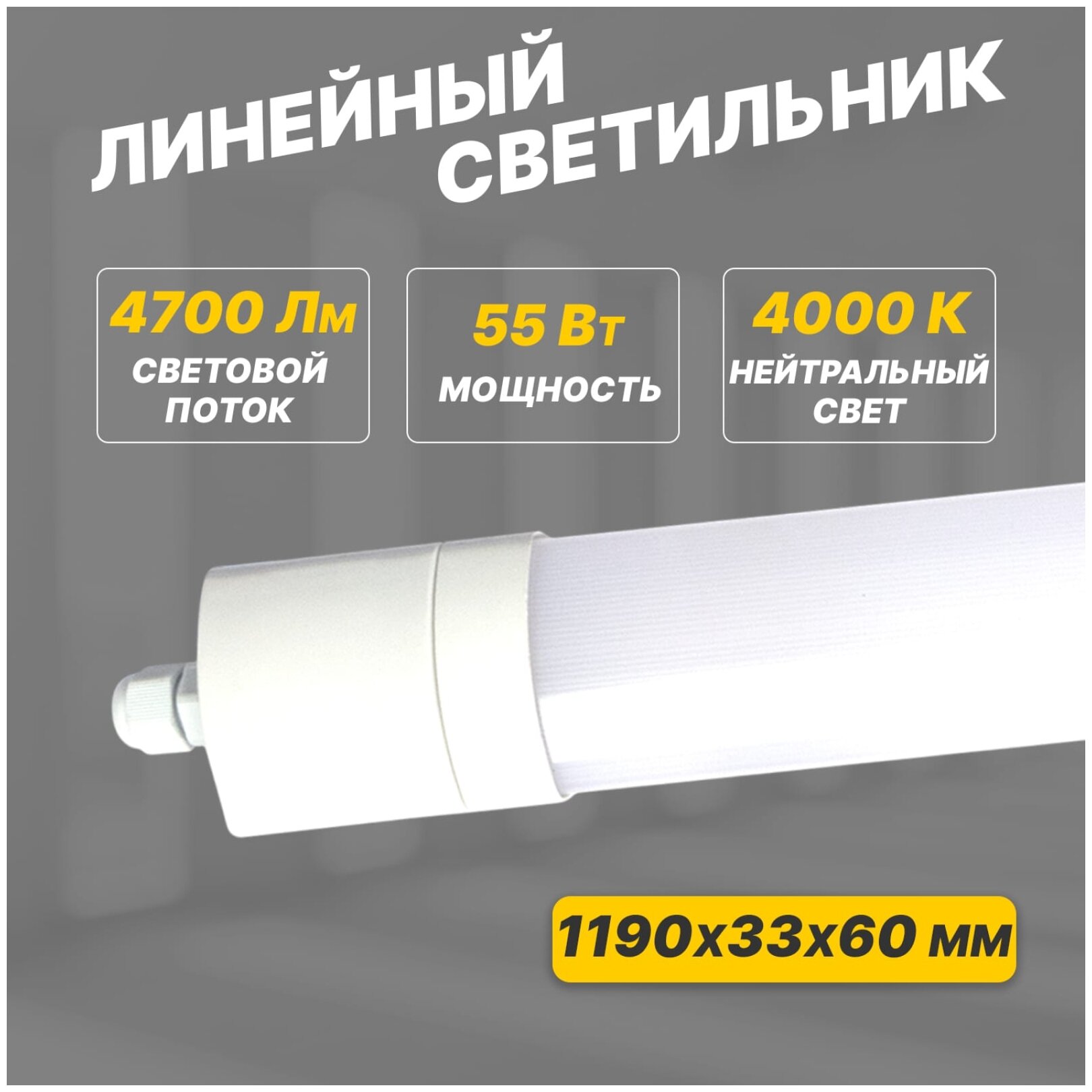 Neon-Night Светильник линейный пылевлагозащищенный ССП IP65 55Вт 185-265В 4000K нейтральный свет 1,2м REXANT