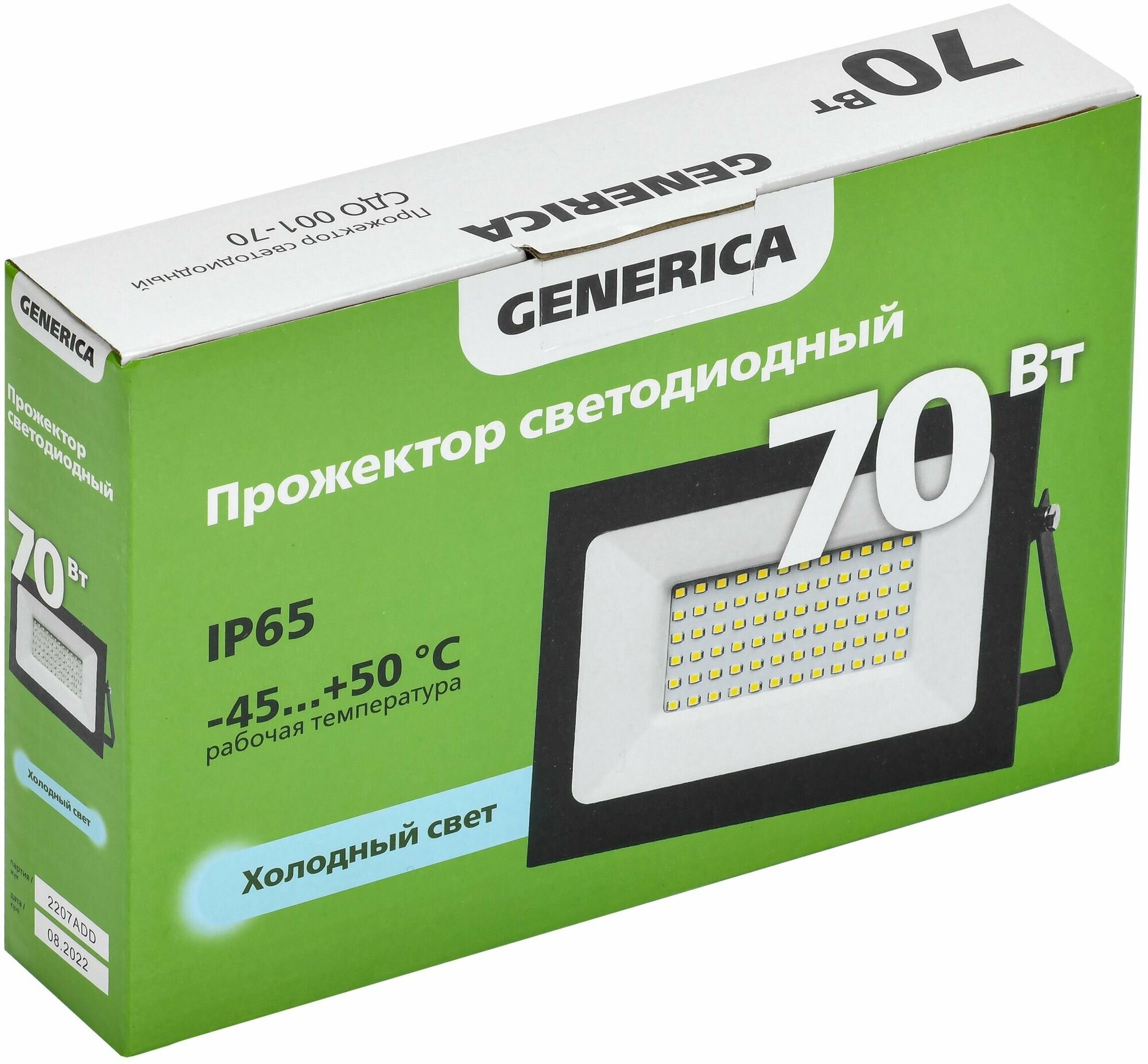 Прожектор светодиодный GENERICA 70Вт 6500К 5600Лм IP65 185х120х35 черный интересное: