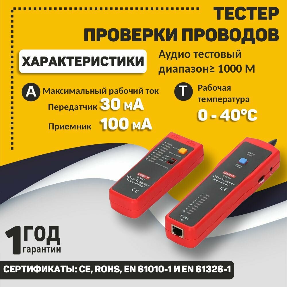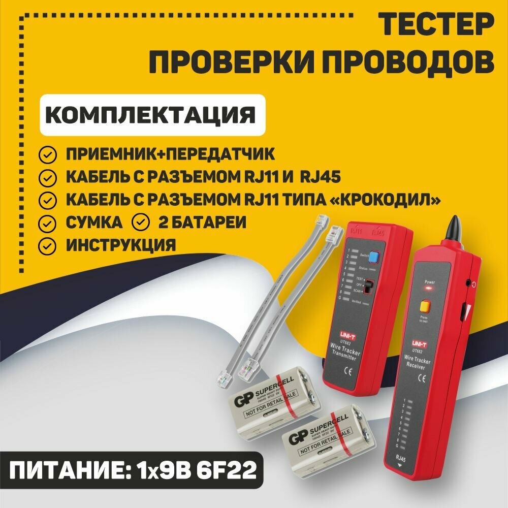 Кабельный тестер UNI-T UT682 , RJ11, RJ45