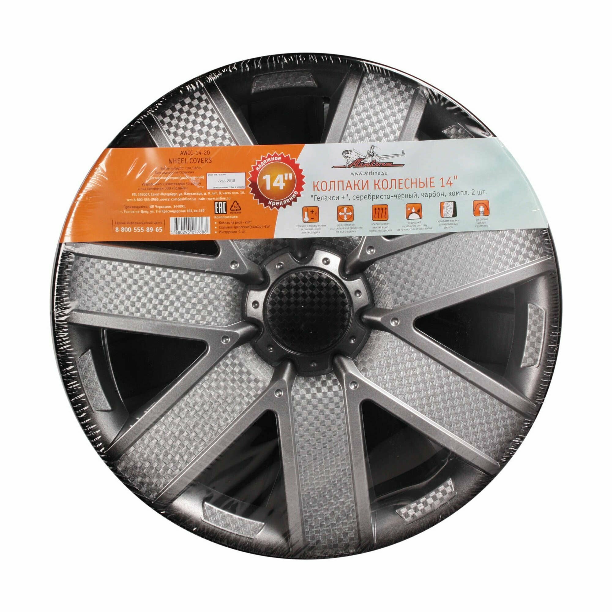 Колпаки Колесные 14" "Гелакси +" Серебристо-Черный, Карбон, Ком/Кт 2 Шт. AIRLINE арт. AWCC-14-20