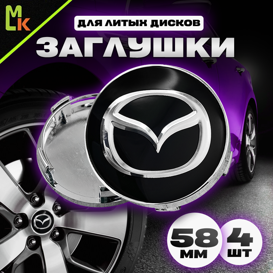 Купить Заглушки на литые диски автомобиля Mahinokom/ для Mazda / Мазда колпачки на ступицу колеса авто, аксессуар защитный с эмблемой/ посадочный диаметр 58 мм, комплект 4 шт.