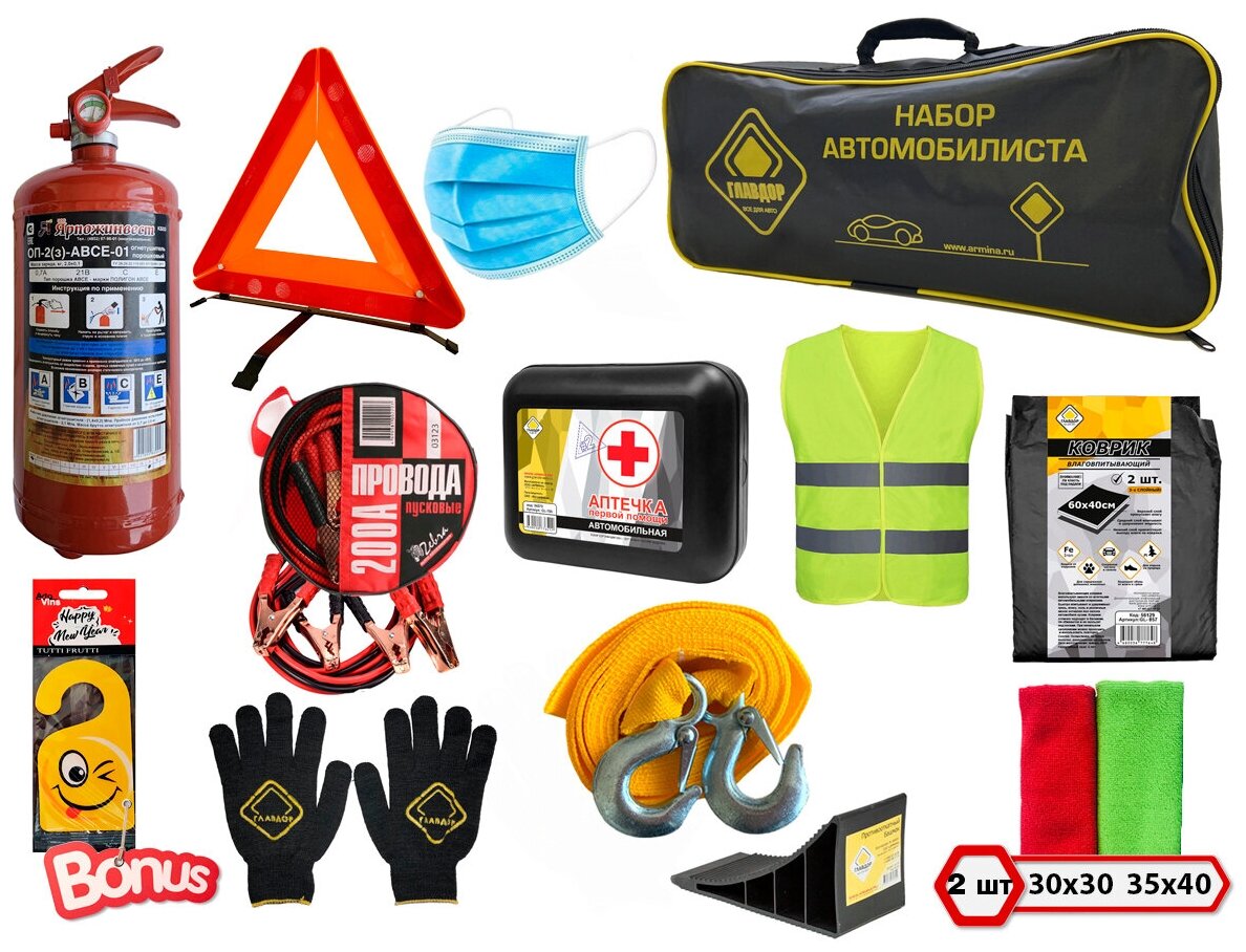 Номальный набор для срочного оснащения авто полезными мелочами.