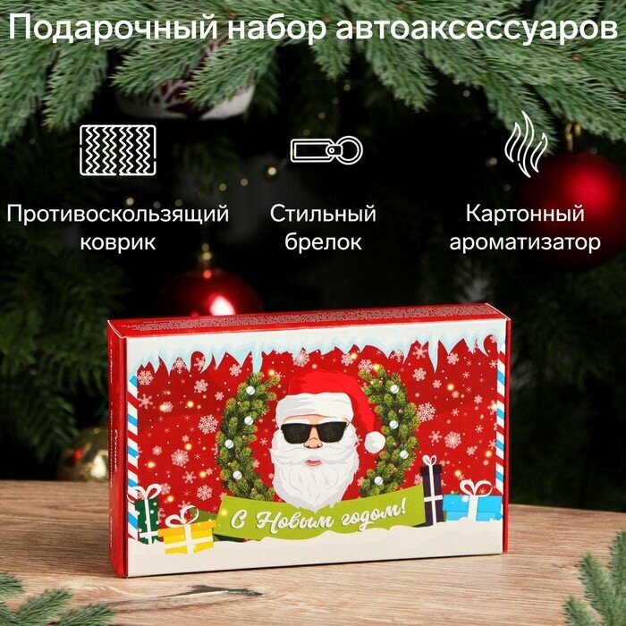 Купить Подарочный набор "Дед мороз 2024" для автомобилиста, набор автоаксессуаров: коврик для телефона, ароматизатор, брелок