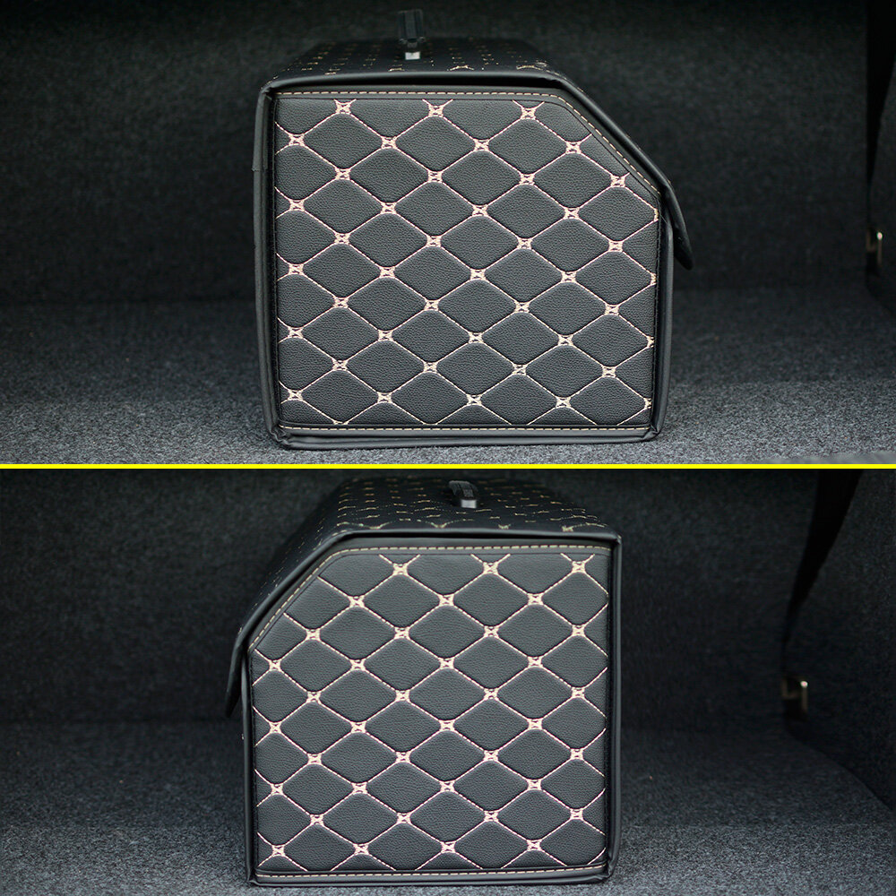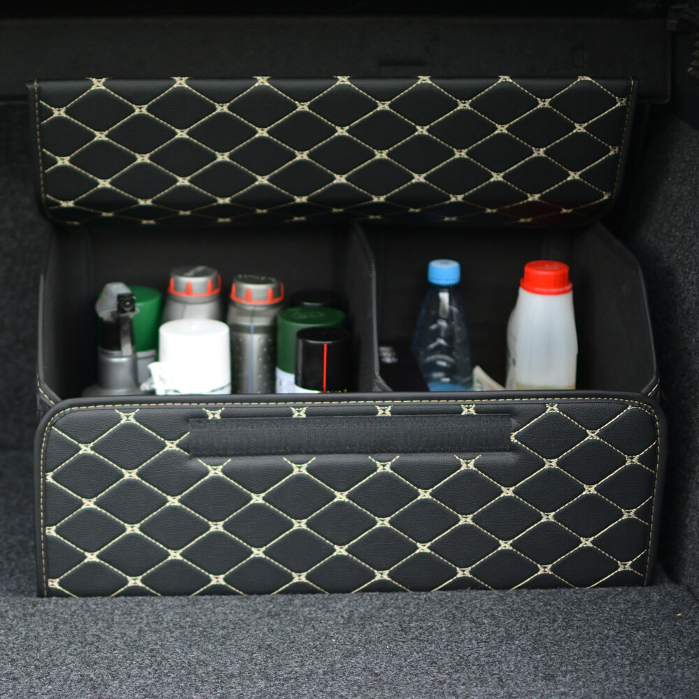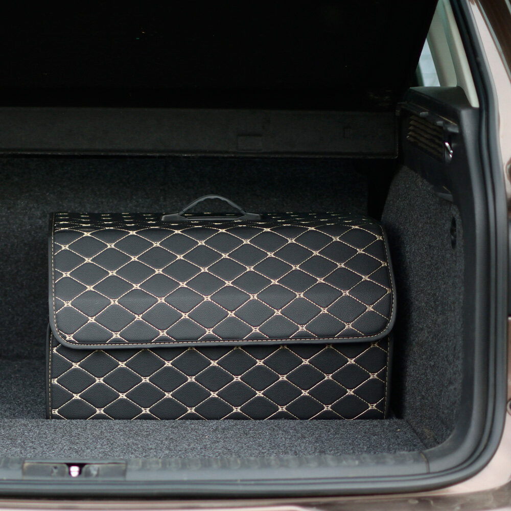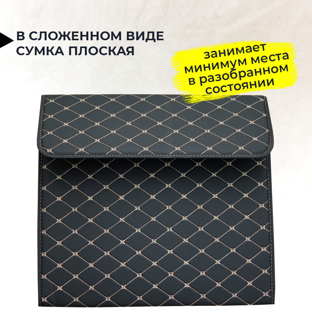 Саквояж в багажник автомобильный эко кожа черная синий ромб, объем 45 л