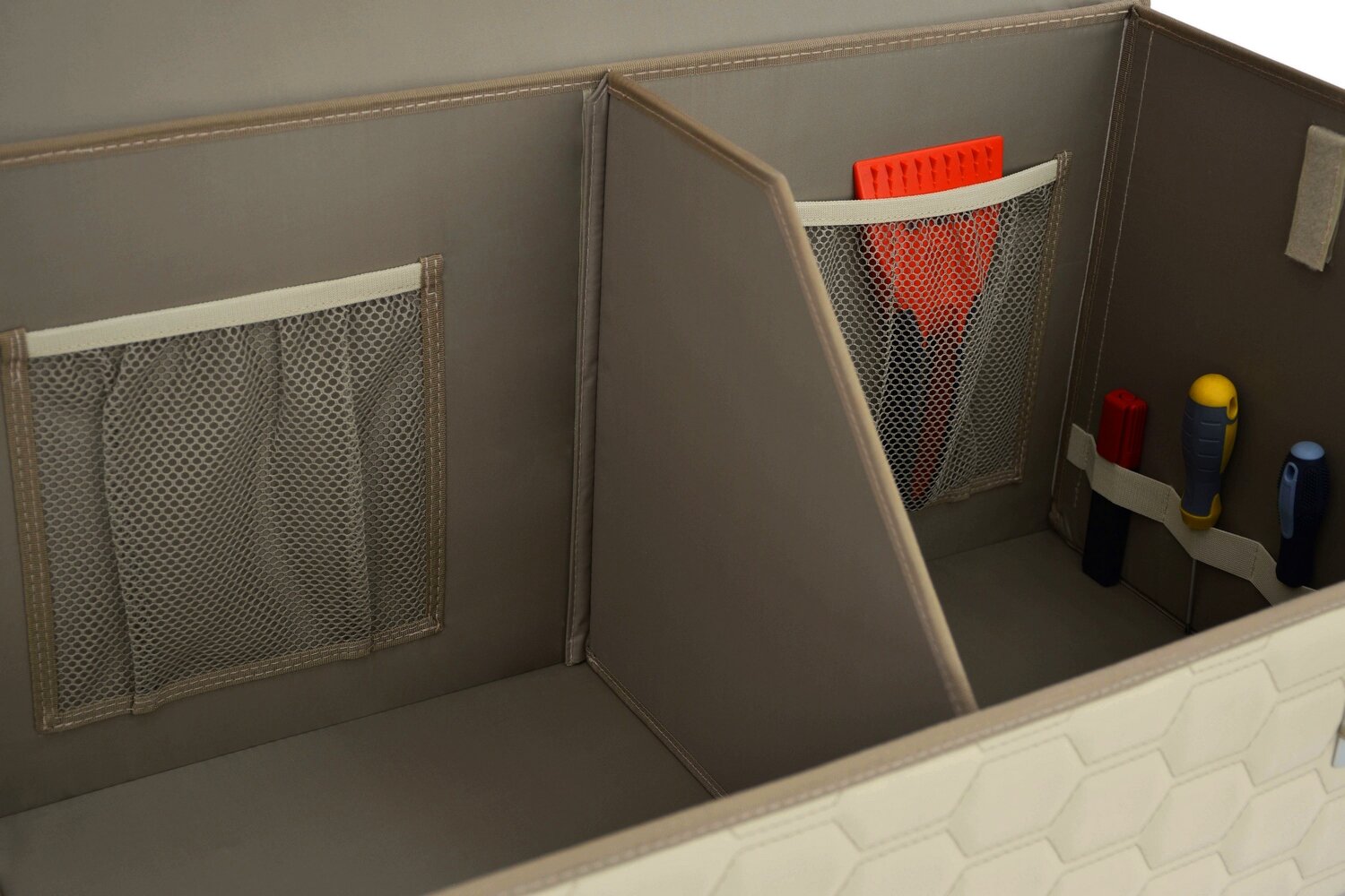 СохранитьОрганайзер-саквояж в багажник "Союз Премиум" (размер XL Plus). Цвет: светло-бежевый с бежевой прострочкой Соты. интересное: