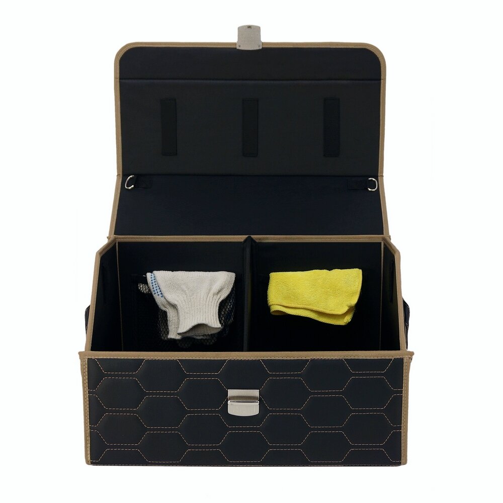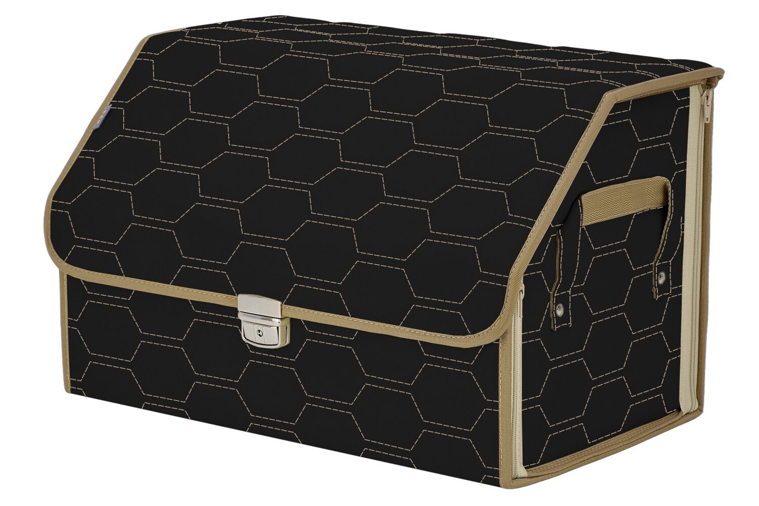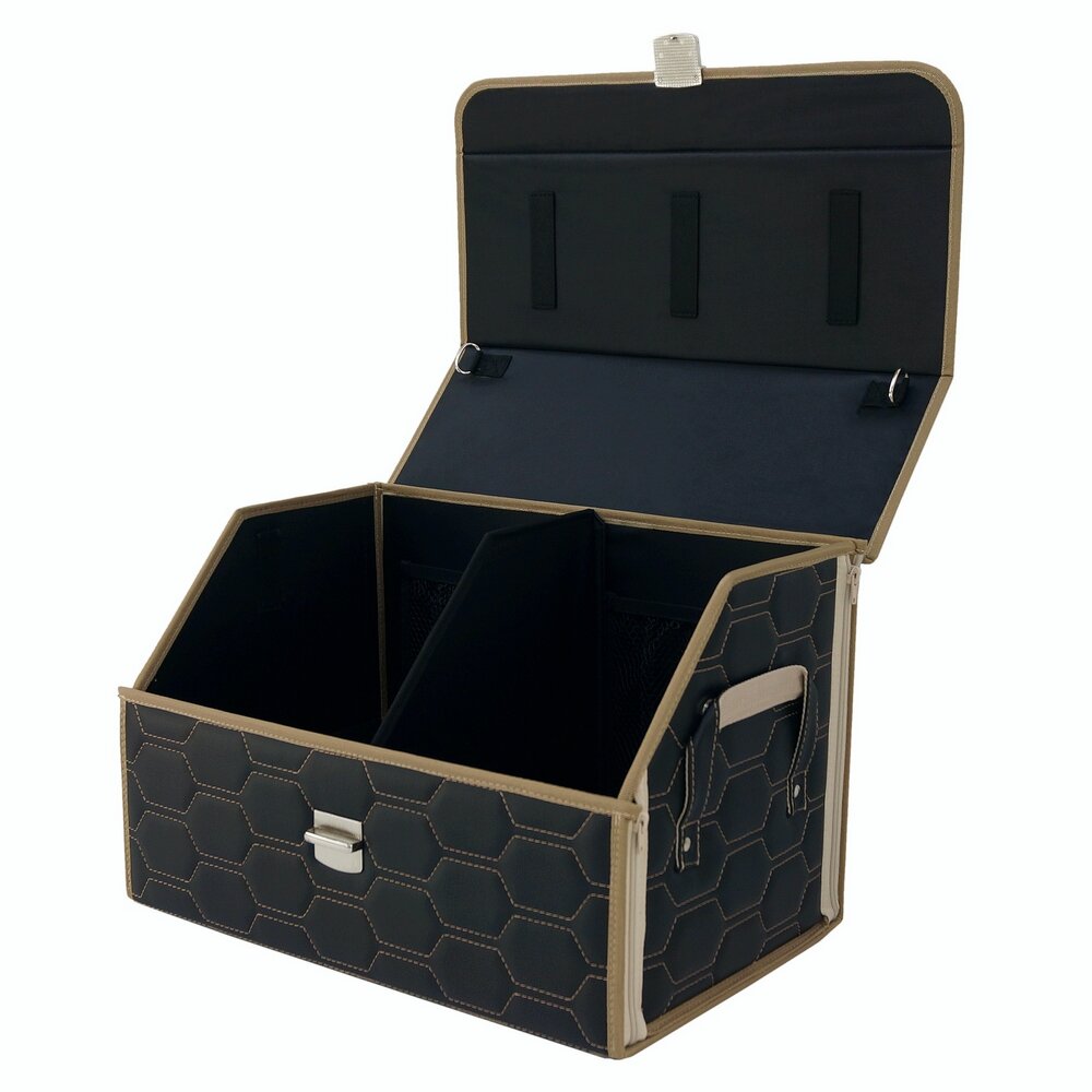 Купить Органайзер-саквояж в багажник "Союз Премиум" (размер L). Цвет: черный с бежевой прострочкой Соты.