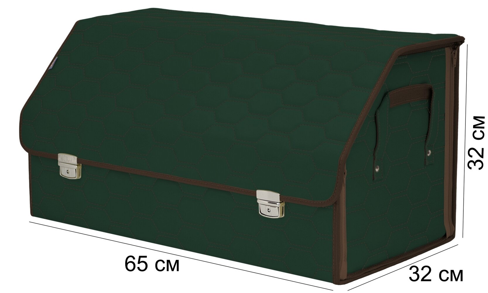 Органайзер-саквояж в багажник "Союз Премиум" (размер XL). Цвет: зеленый с коричневой прострочкой Соты.