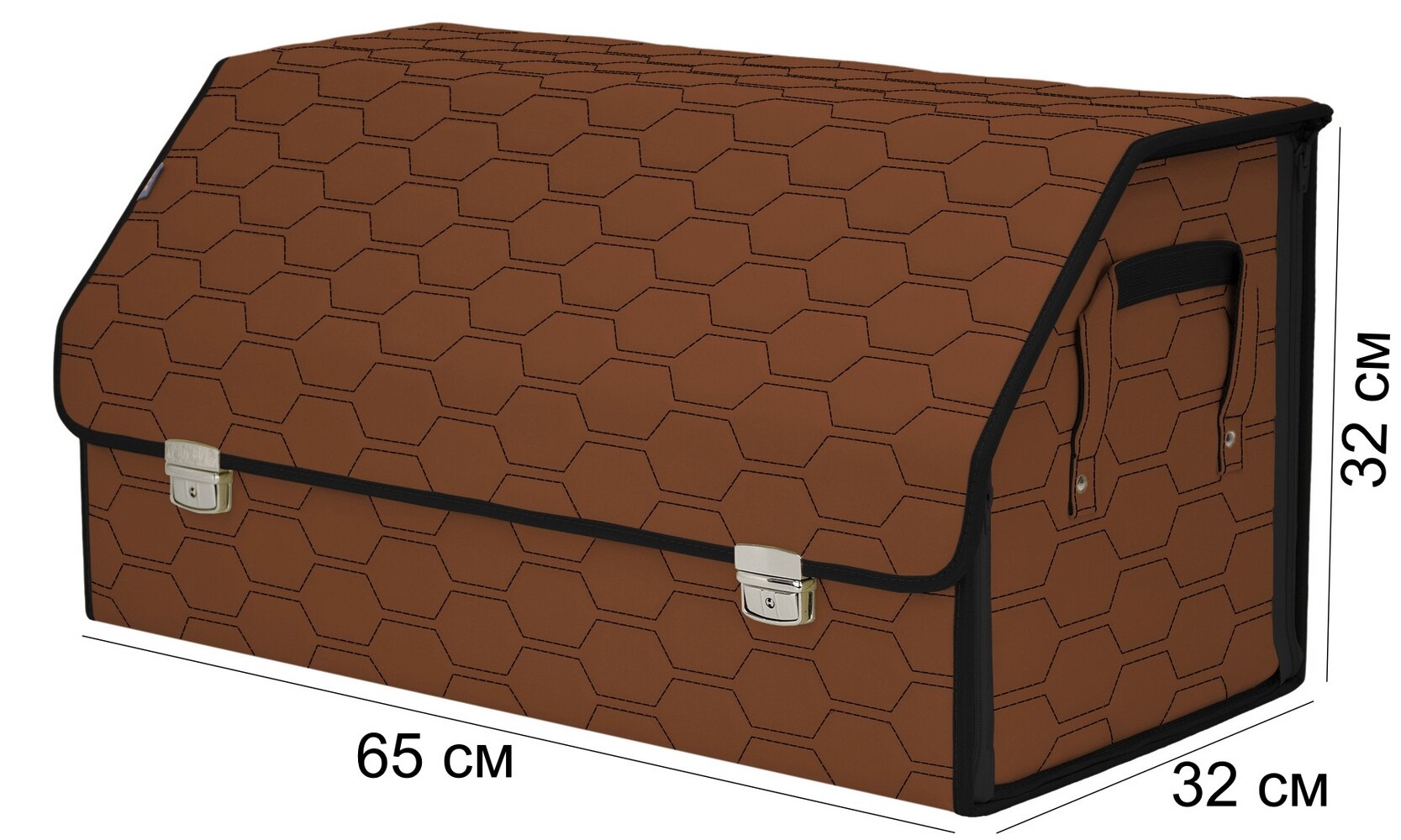 СохранитьОрганайзер-саквояж в багажник "Союз Премиум" (размер XL Plus). Цвет: светло-коричневый с черной прострочкой Соты. интересное: