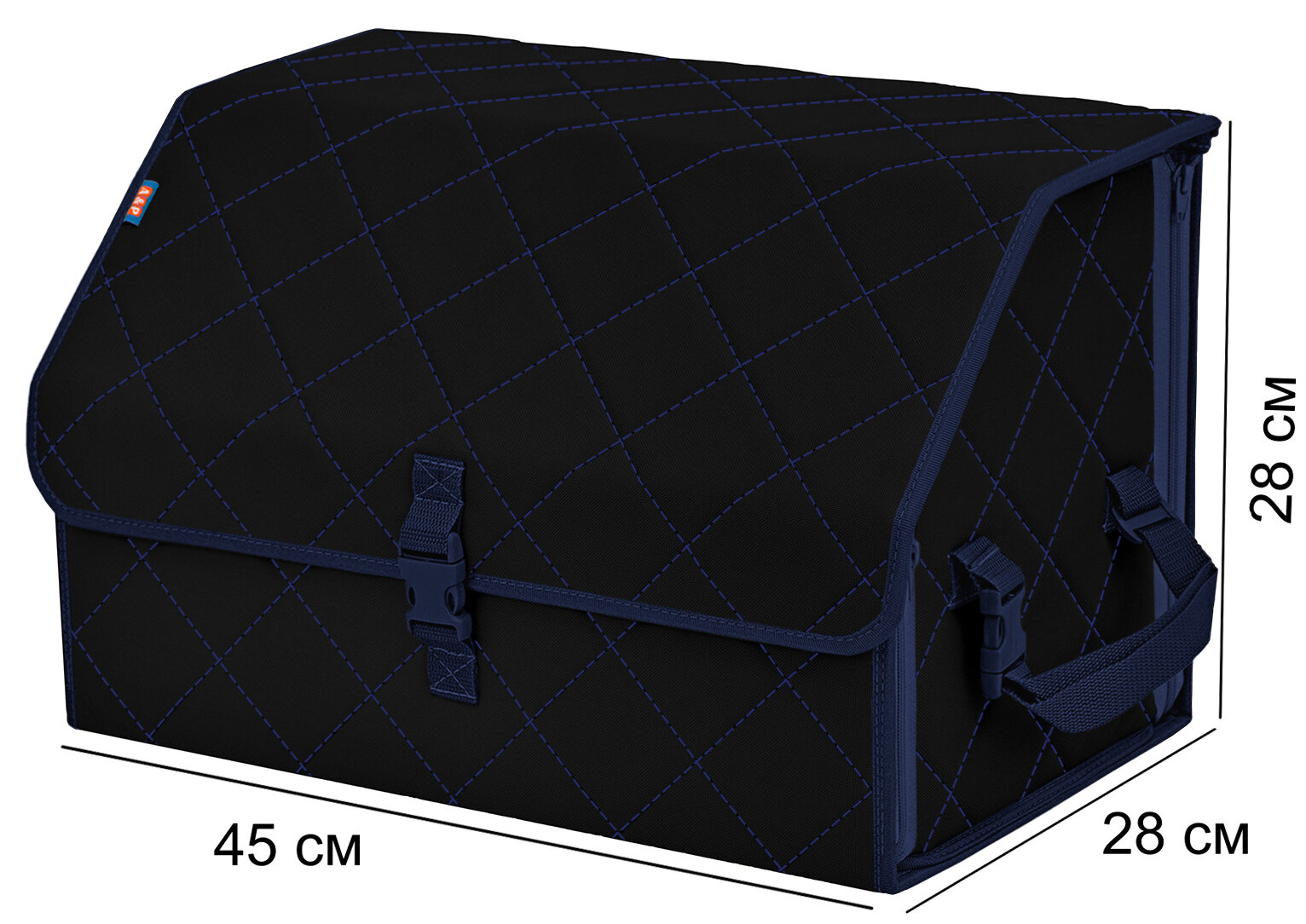 Саквояж в багажник автомобильный эко кожа черная синий ромб, объем 45 л