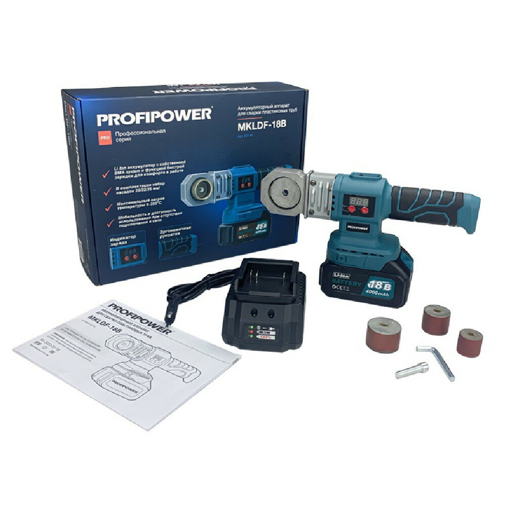 Аккумуляторный аппарат для сварки пластиковых труб ProfiPower MKLDF-18B (Li-ion-1шт, 4Ач, З/У, кейс)