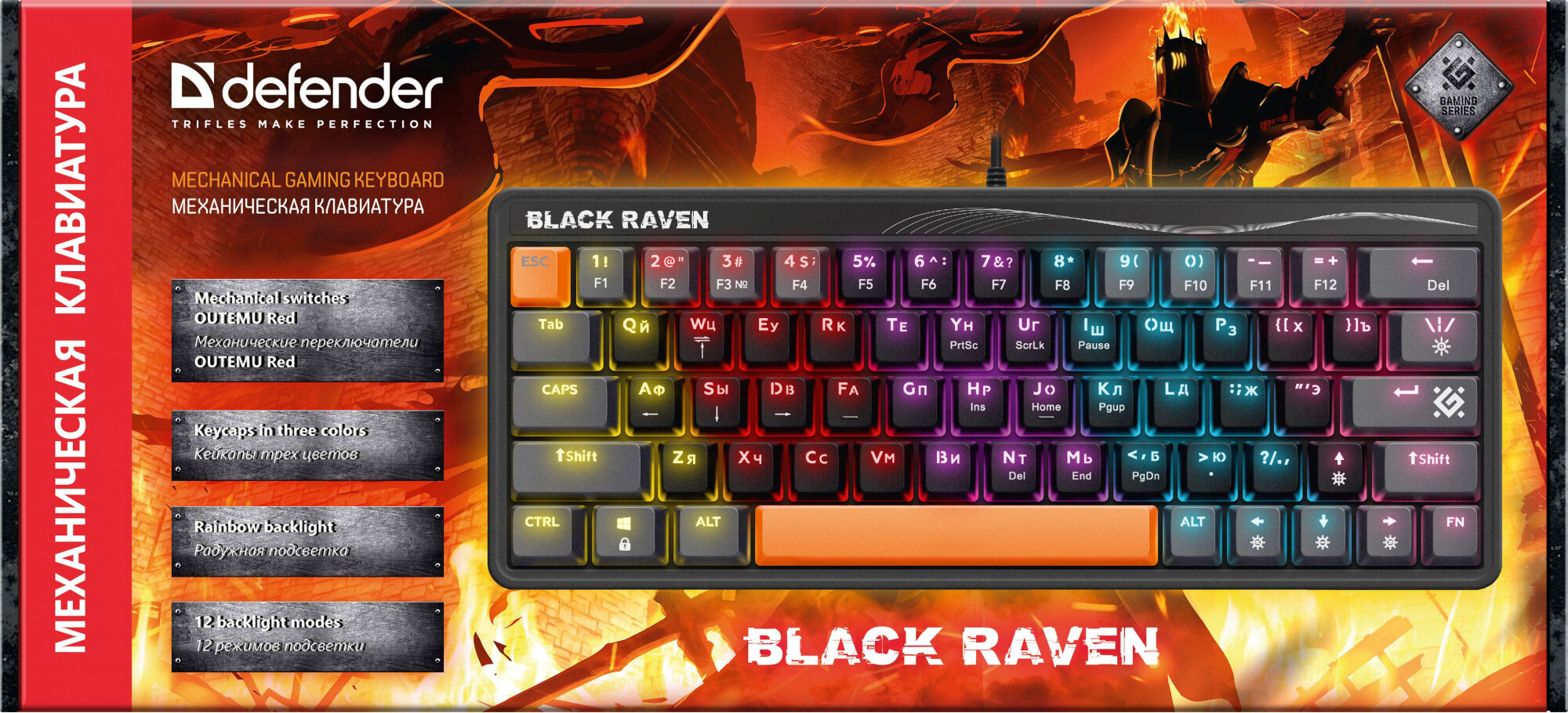 Механическая клавиатура Defender Black Raven GK-417 RU,3цвета, радужная,63кн