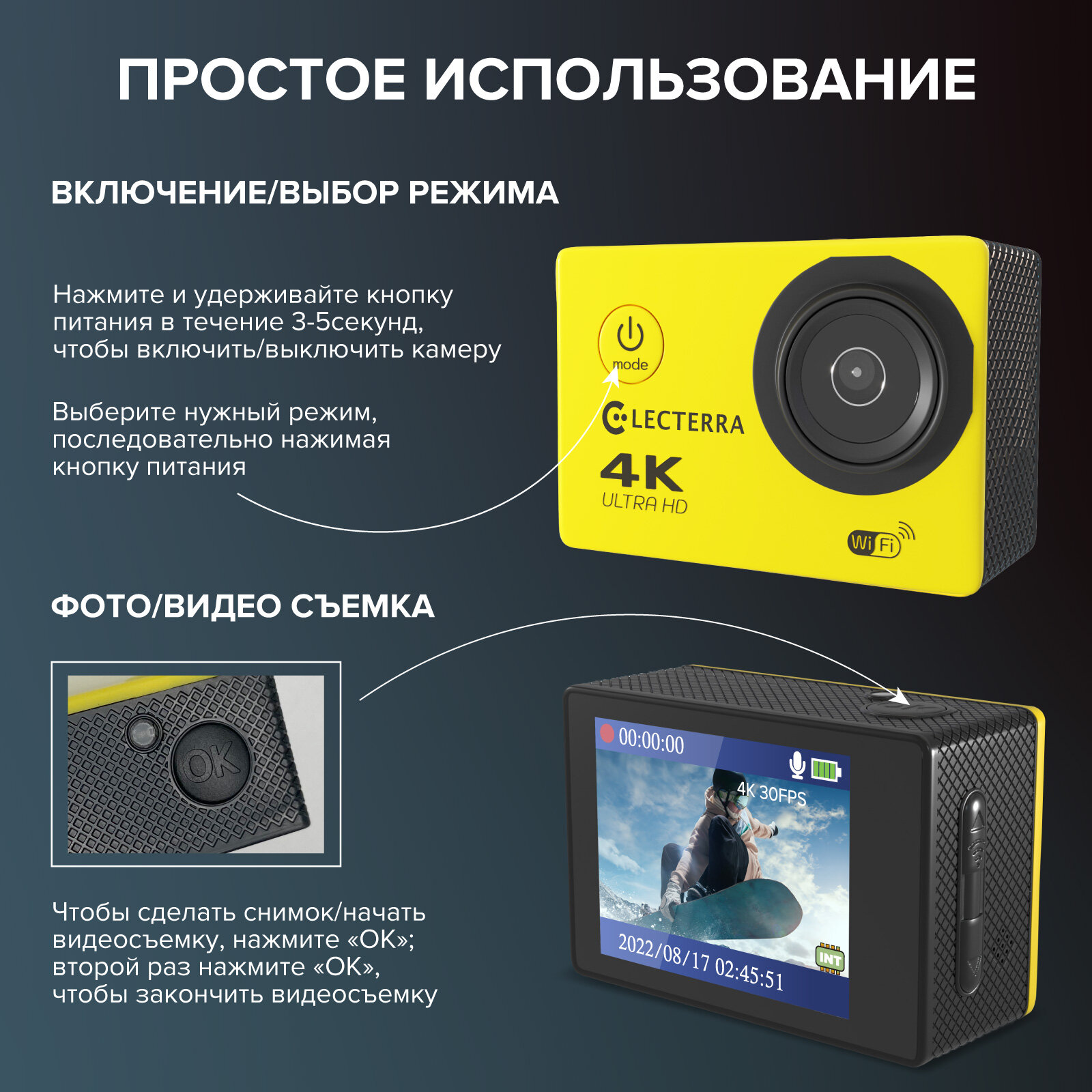 Ниже Вы можете прочитать отзывы на Экшн-камера Electerra 4К 1080p Ultra HD. Подводная экшен камера желтая. Подарок на Новый Год, ознакомится с подробными характеристиками, посмотреть интересные обзоры и фотографии на Экшн-камера Electerra 4К 1080p Ultra HD. Подводная экшен камера желтая. Подарок на Новый Год.