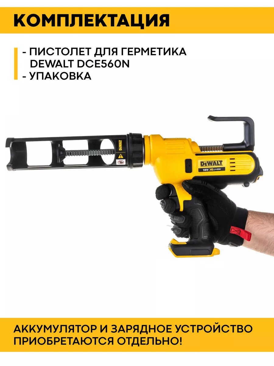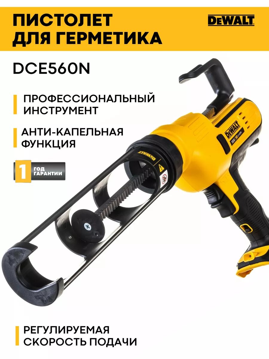 Аккумуляторный пистолет для герметика DeWALT, 18 В, 300-310 мл, без АКБ и ЗУ, DCE560N