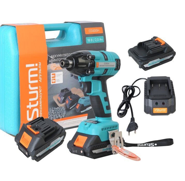 Аккумуляторный винтоверт Sturm! CD300H 18 В, 2 скор., 2 акк. Li-Ion 20 Ач 300 Нм 1/4 зар 1ч 1BatterySystem