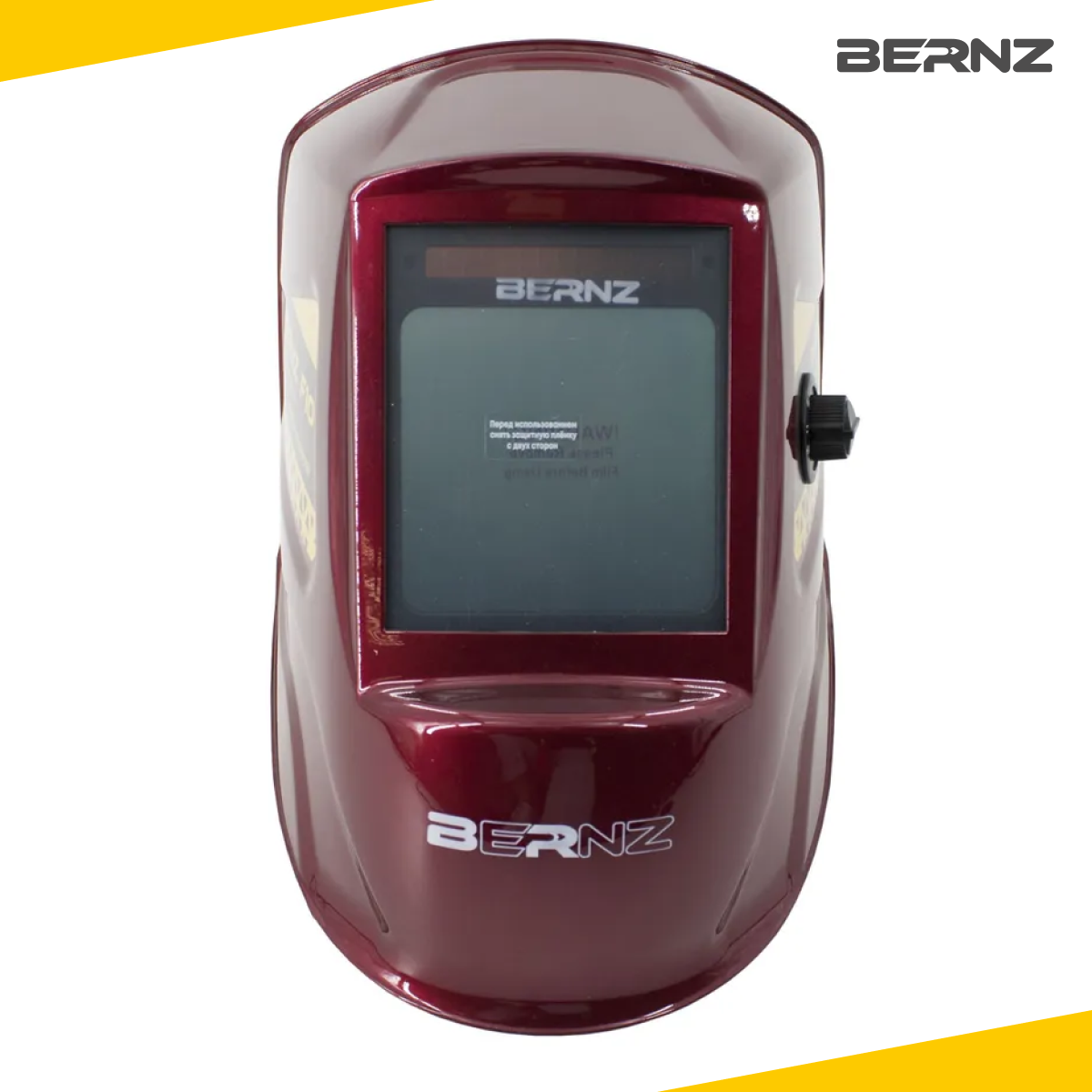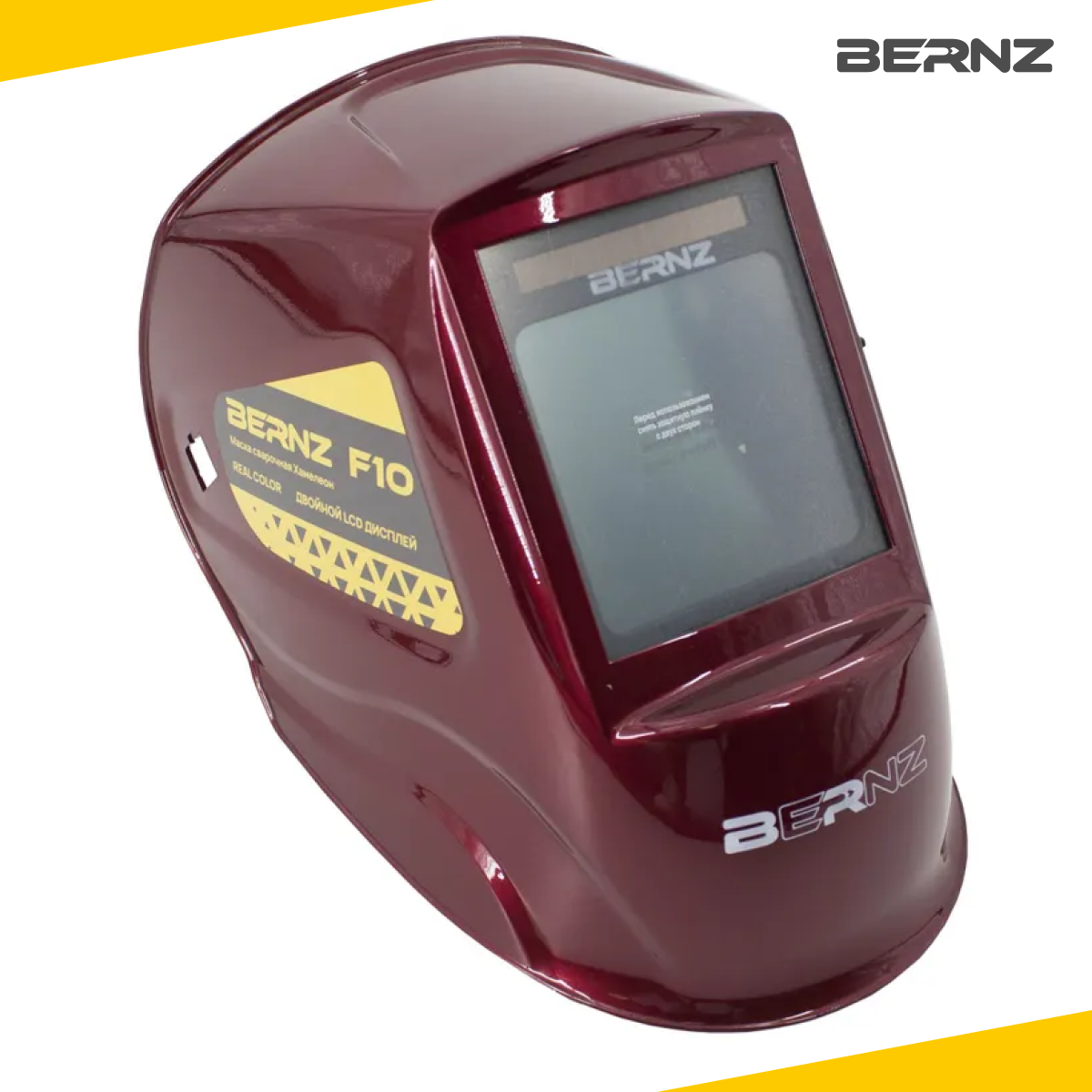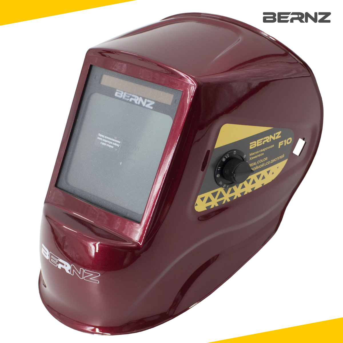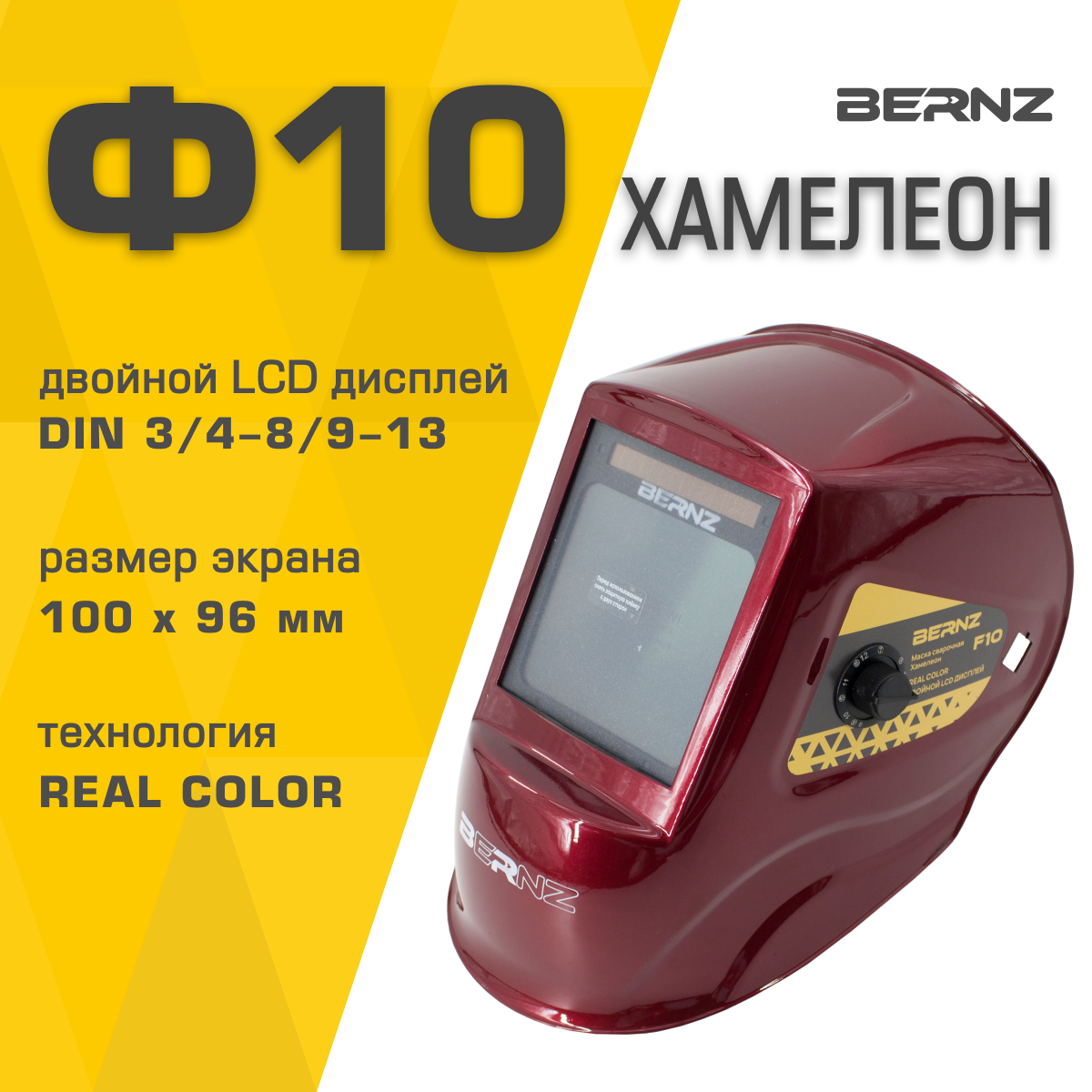 Маска сварщика BERNZ Ф10 красная, Хамелеон 103х90 мм, DIN 3/4-8/9-13, внешняя регулировка, в коробке интересное: