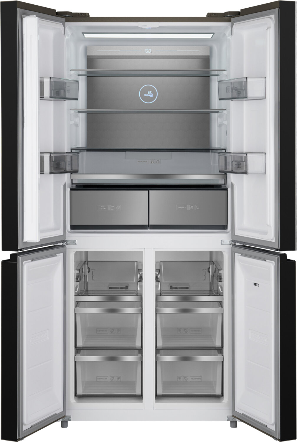 Отдельностоящий холодильник с инвертором Weissgauff WCD 590 Nofrost Inverter Premium Ecofresh Rock Glass, гарантия 3 года, технология Multi Air Flow, Metal-Tech Cooling, суперзаморозка, суперохлаждение, LED-освещение