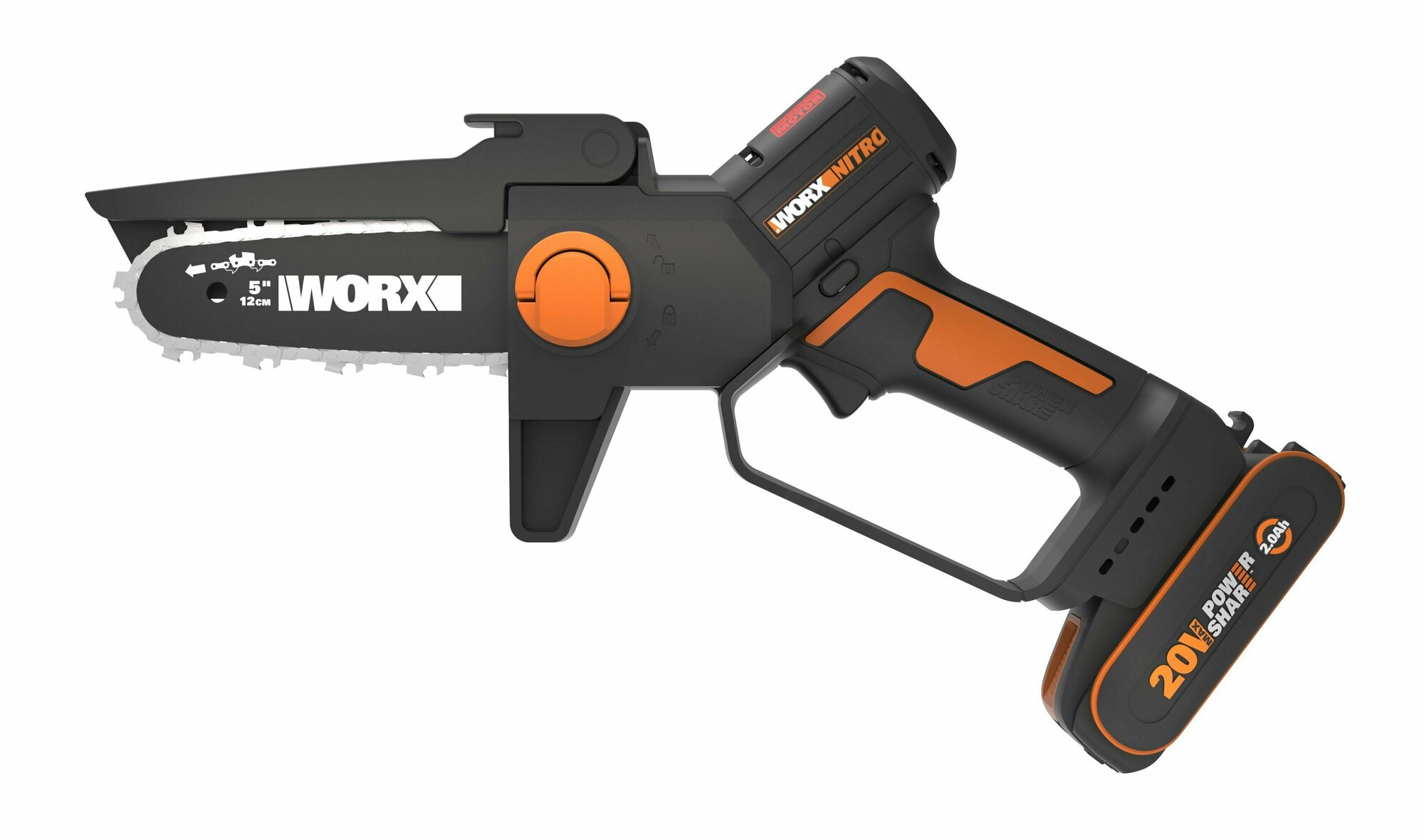 Мини-пила цепная WORX WG325E 20V 12 см бесщеточная аккумуляторная с 2 Ач батареей и 2А зарядкой интересное: