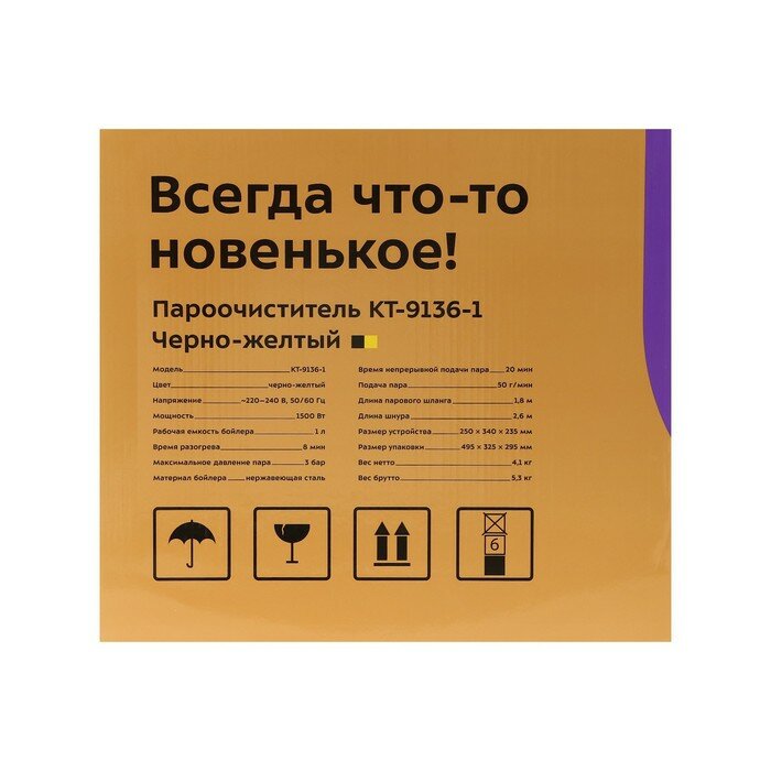 Пароочиститель КТ-9136-1, 1500 Вт, 1 л, 50 г/мин, нагрев 8 мин, жёлтый