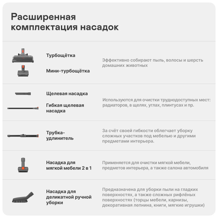 Длинная щелевая насадка-очень удобно убирать под холодильником, шкафами, за тумбами. |