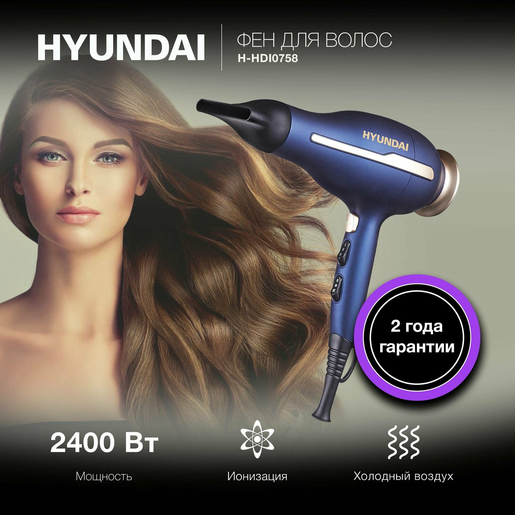 Фен Hyundai H-HDI0758, 2400Вт, синий и золотистый интересное: