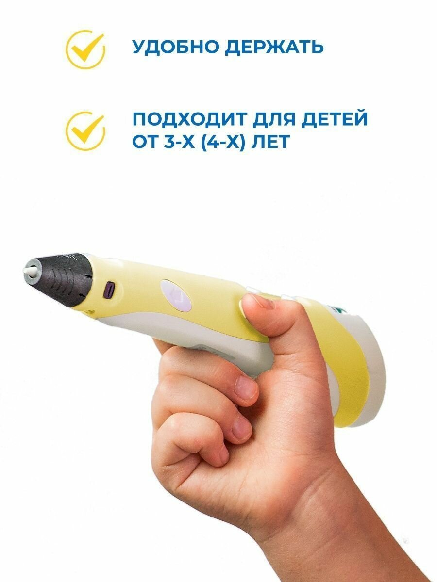 Сохранить3D ручка 3DPEN-3 с набором пластика 70 метров и трафаретами для 3д рисования, желтая интересное: