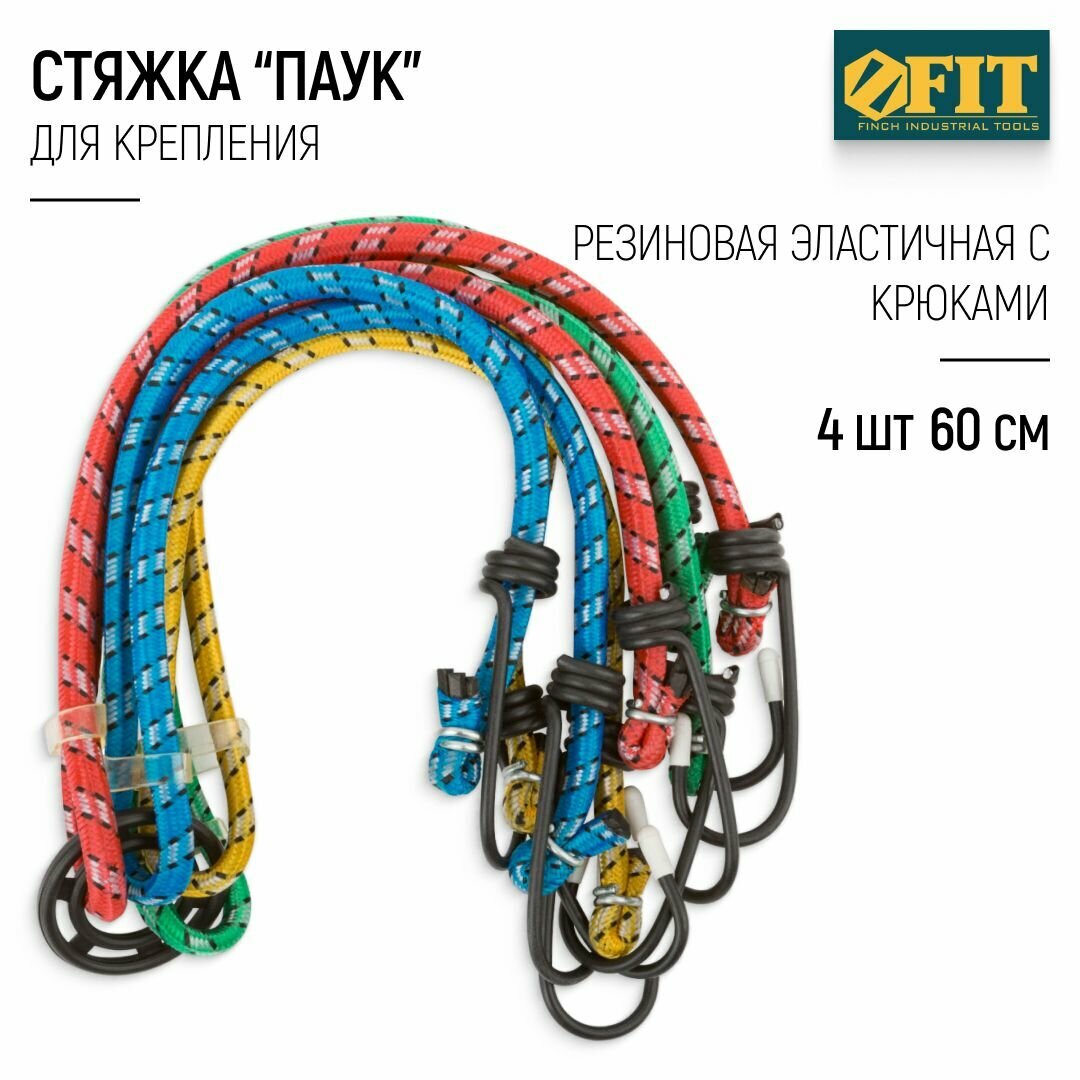 FIT Стяжка для крепления груза багажа "Паук" 60 см ремни стяжные резиновые эластичные с крюками, 4 шт.