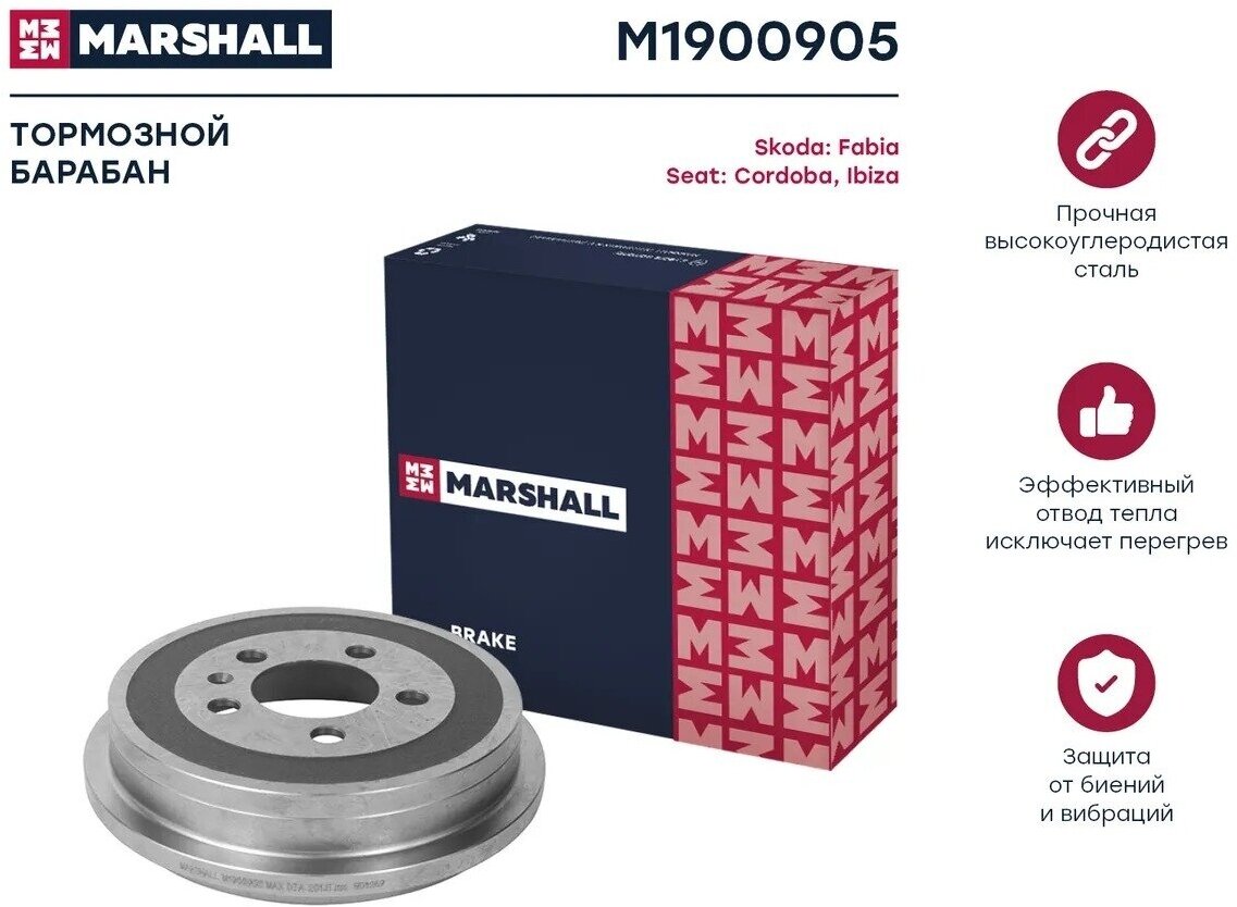MARSHALL M1900905 Тормозной барабан задн. Skoda Fabia I-III 99-, Seat Cordoba 02- / Ibiza III, IV 02- (M1900905)