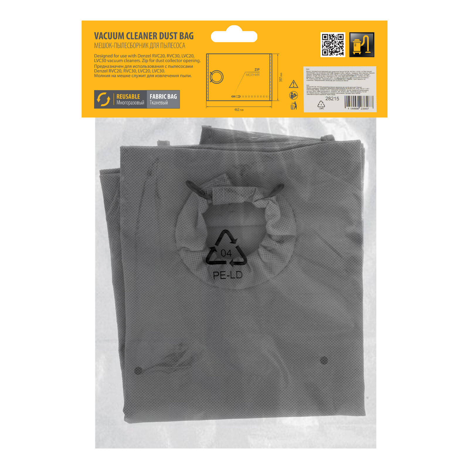 Мешок тканевый многоразовый для пылесосов Denzel RVC20, RVC30, LVC20, LVC30 Denzel 28215 интересное: