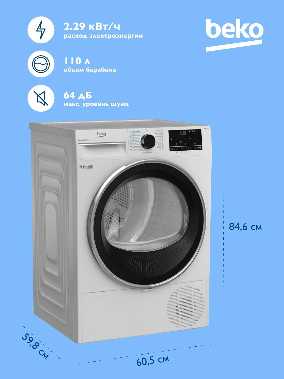 Сушильная машина BЕКО B5T69233 интересное: