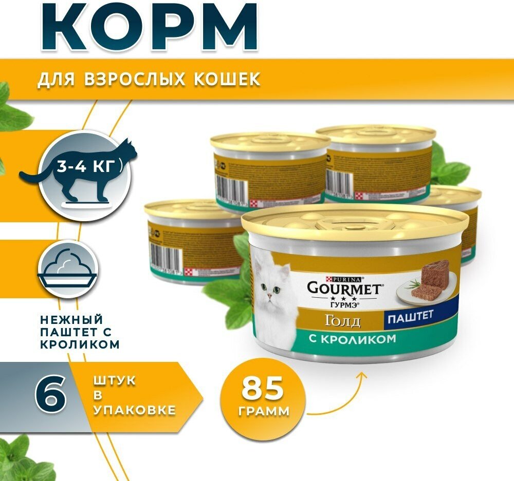 Влажный корм для кошек Гурмэ Голд, с кроликом 6 шт. х 85 г (мусс) интересное: