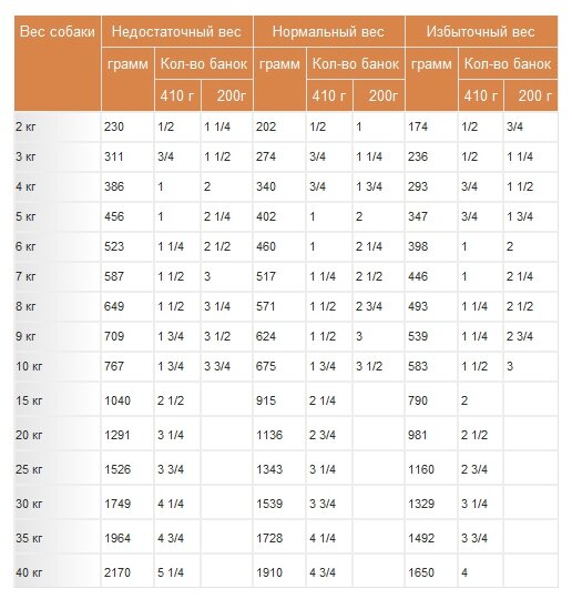 | Дозировка | Суточную норму кормления рекомендуется разделить на две порции, либо посмотреть таблицу кормления. |