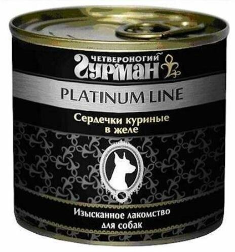 Четвероногий Гурман Platinum line консервированный корм с желудочками куриными в желе для взрослых собак всех пород - 240 г (12 шт)