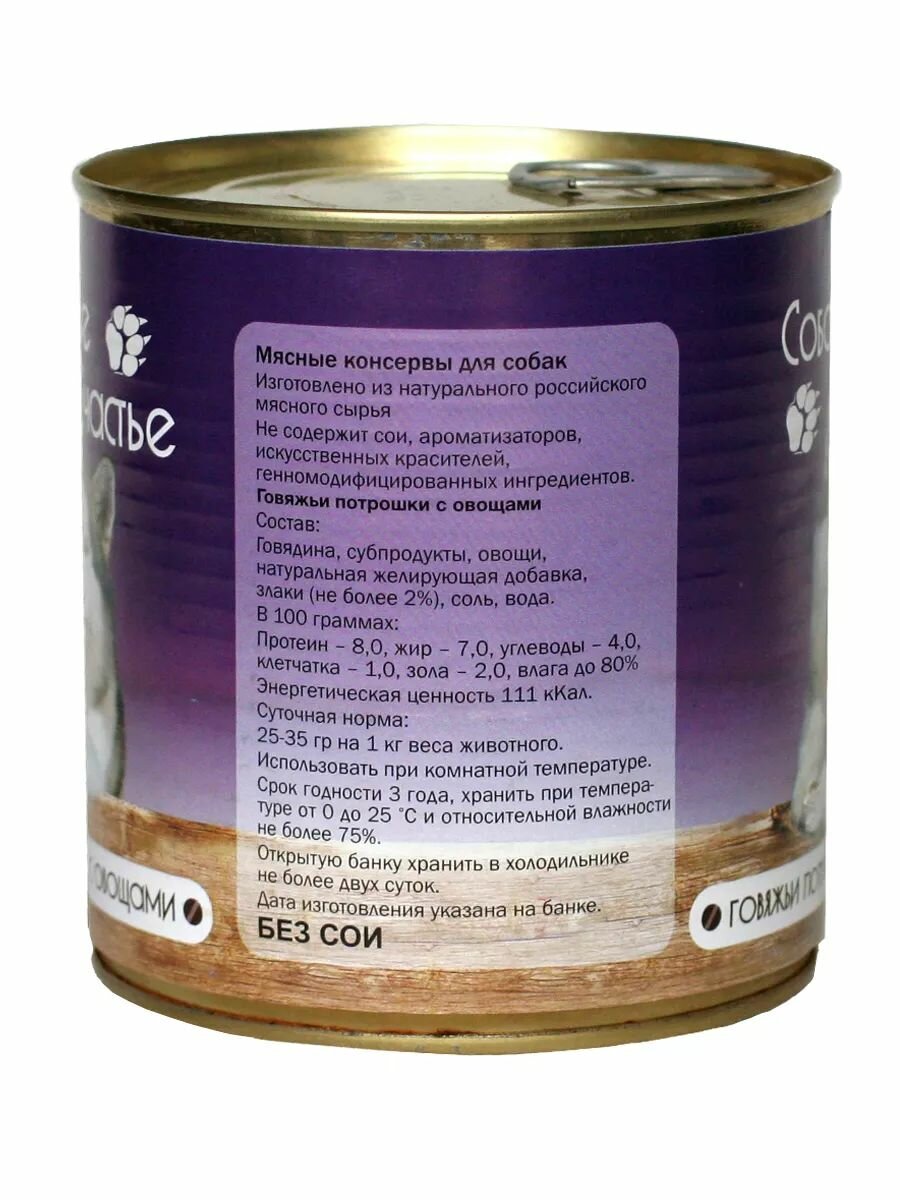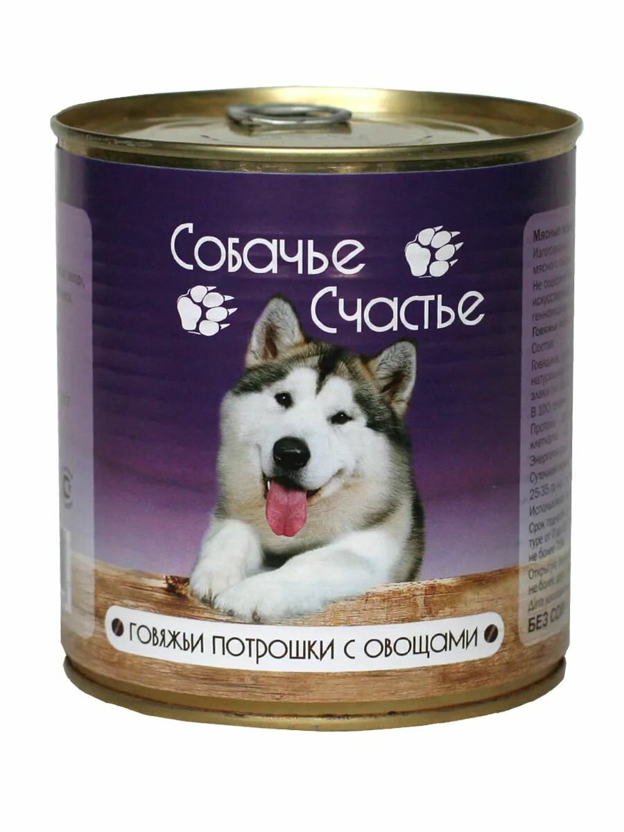 Консервированный корм для собак, Собачье Счастье , говяжьи потрошки с овощами, 750 г, 1 шт.