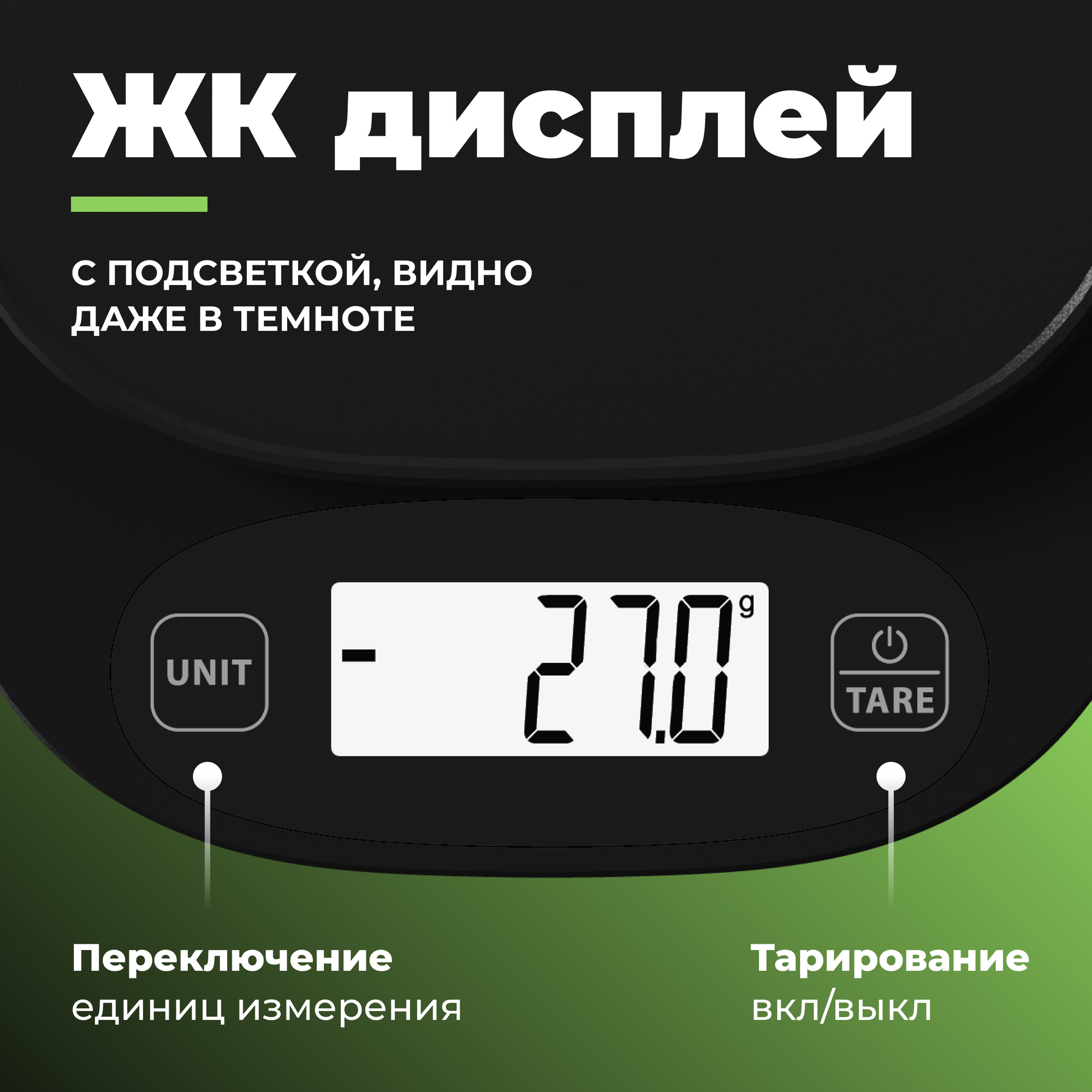 | Дополнительная информация | Заряд от USB; Автоотключение через 2 минуты; Измерение объема жидкости; Индикация перегрузки; Подсветка экрана; Индикация неровной поверхности; Компактная и функциональная форма. |