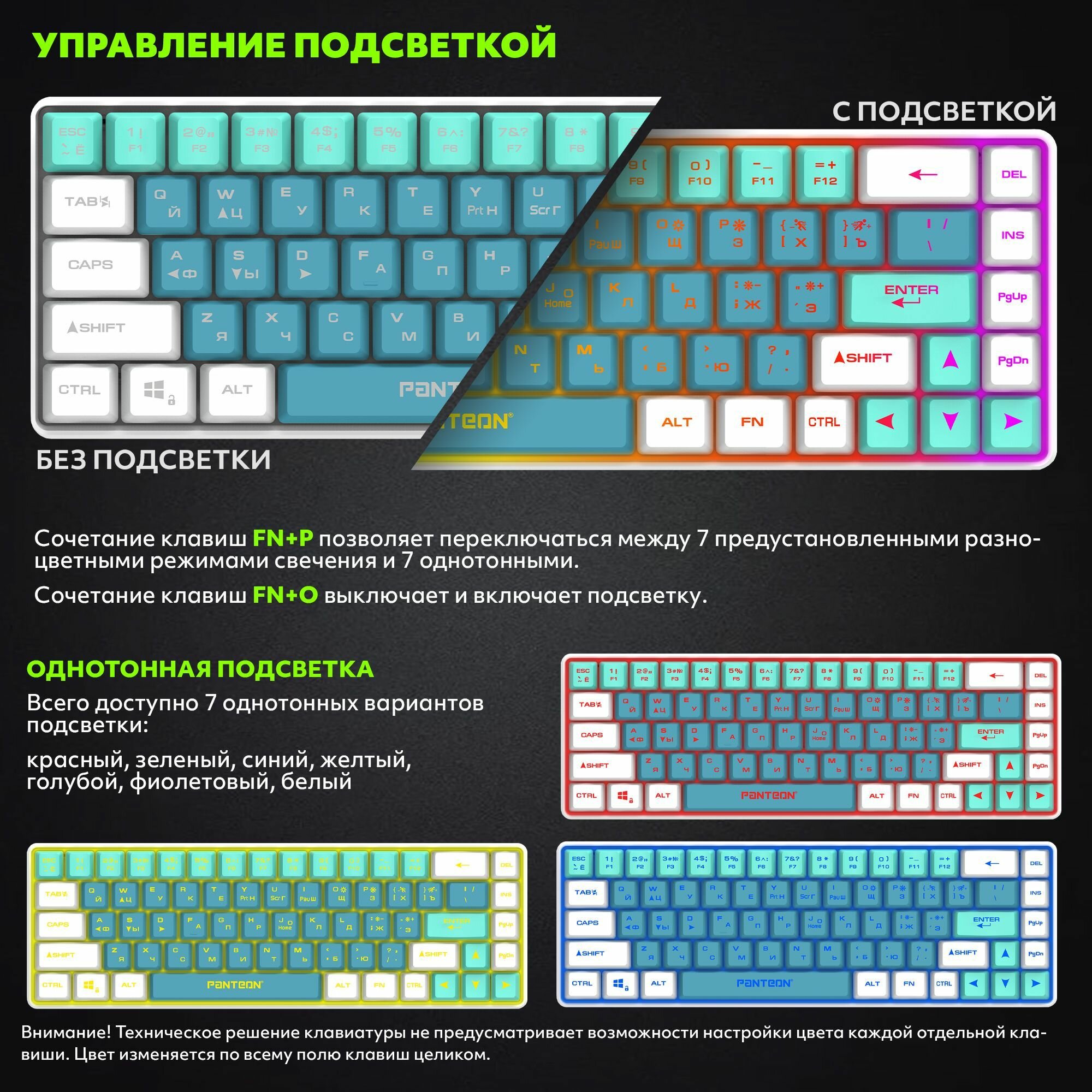 PANTEON M2 Black-Grey(04) Игровая мембранная TKL (65%) клавиатура с LED-подсветкой MULTICOLOR (68 кл.,USB), цвет: черный-серый (04)