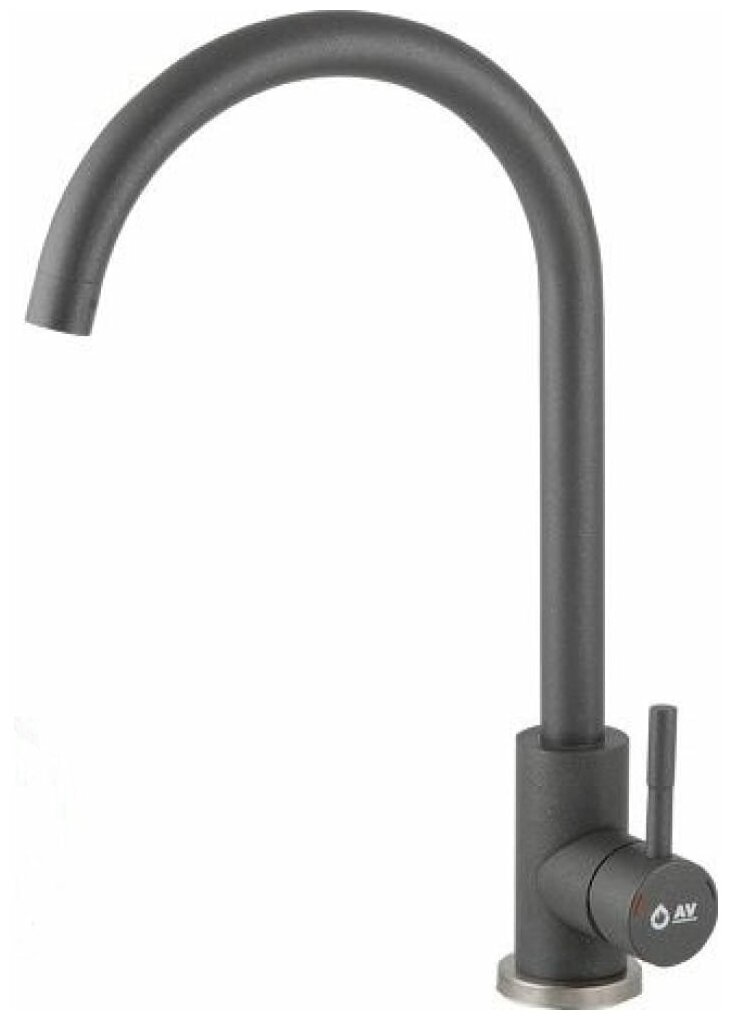 Смеситель для кухни (SUS 304) D35 AVZAR4-A304GR серый AV Engineering (Поворотный излив, длина 18 см, высота 25 см) (AVZAR4-A304GR-734)