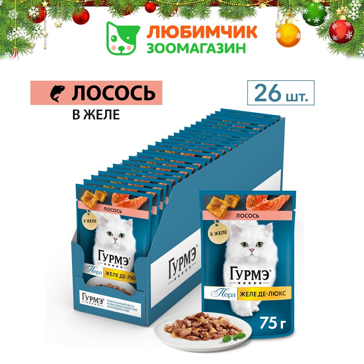 Гурмэ Перл Желе Де-Люкс 75 г влажный корм для кошек, с лососем в роскошном желе х26 штук