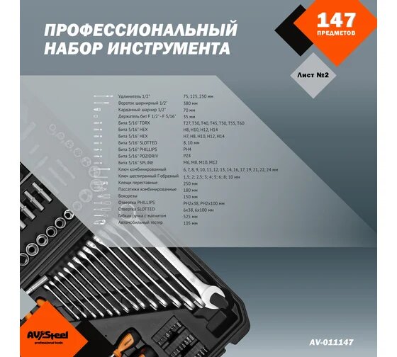 AV Steel Набор инструмента "" 147 предм. профессион. AV-011147 интересное: