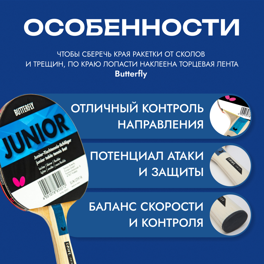 Ракетка для настольного тенниса Butterfly Junior, CV интересное: