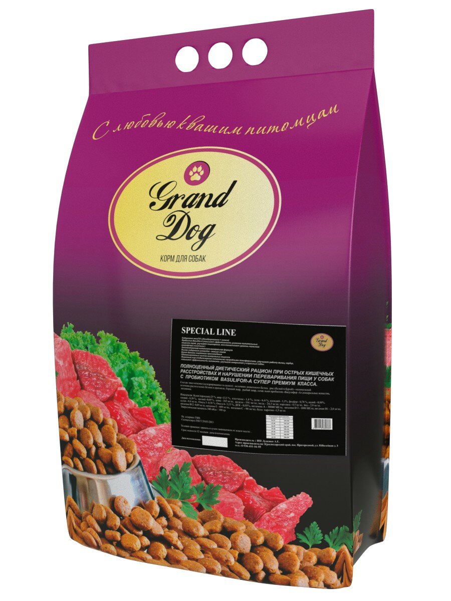 Купить Полнорационный диетический корм при острых кишечных расстройствах и нарушении переваривания пищи у собак с пробиотиком Grand Dog Гранд Дог 3 кг