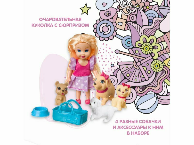 | Комплектация | - кукла; - 4 собачки; - аксессуары. |