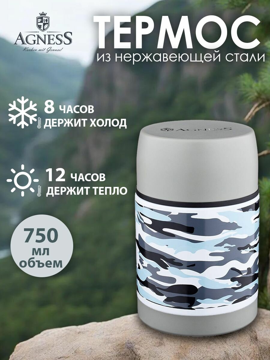 Термос agness с широким горлом 750 мл.колба нерж.сталь