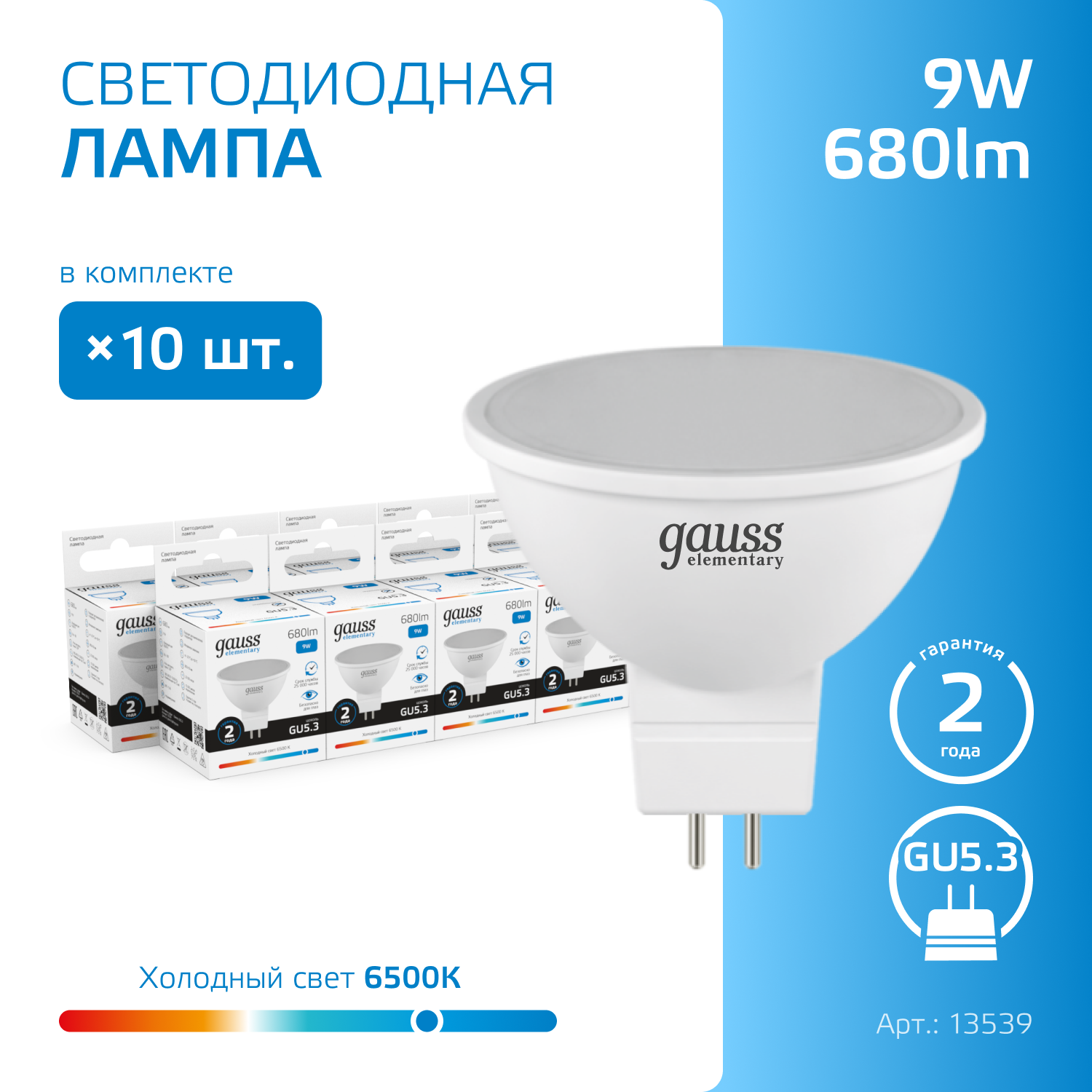 Купить Лампа светодиодная Gauss Elementary MR16 9Вт цок.GX5.3 спот 220B 6500K св.свеч.бел.хол. MR16 упак.10