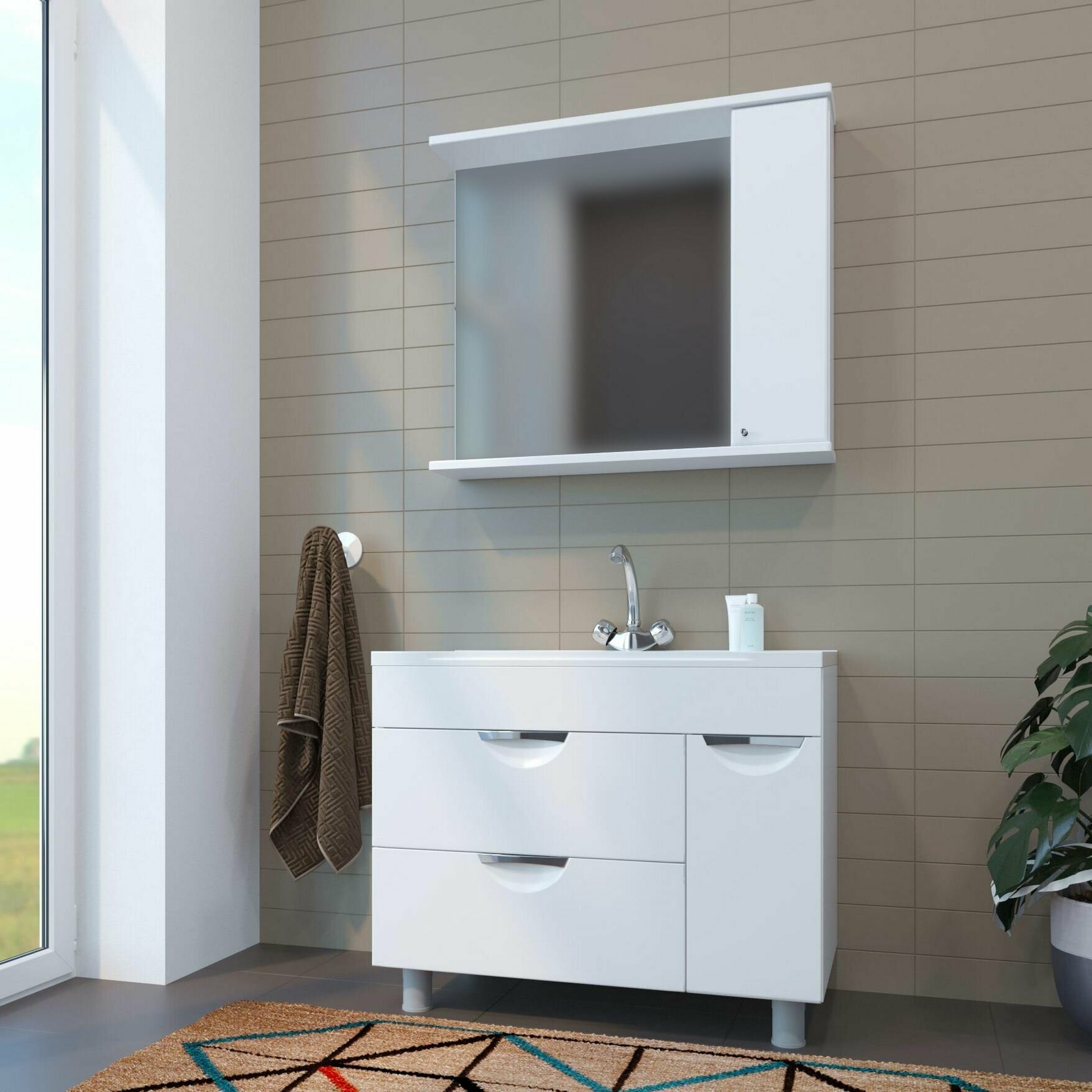 Тумба с раковиной для ванной Кристалл 50 белая.