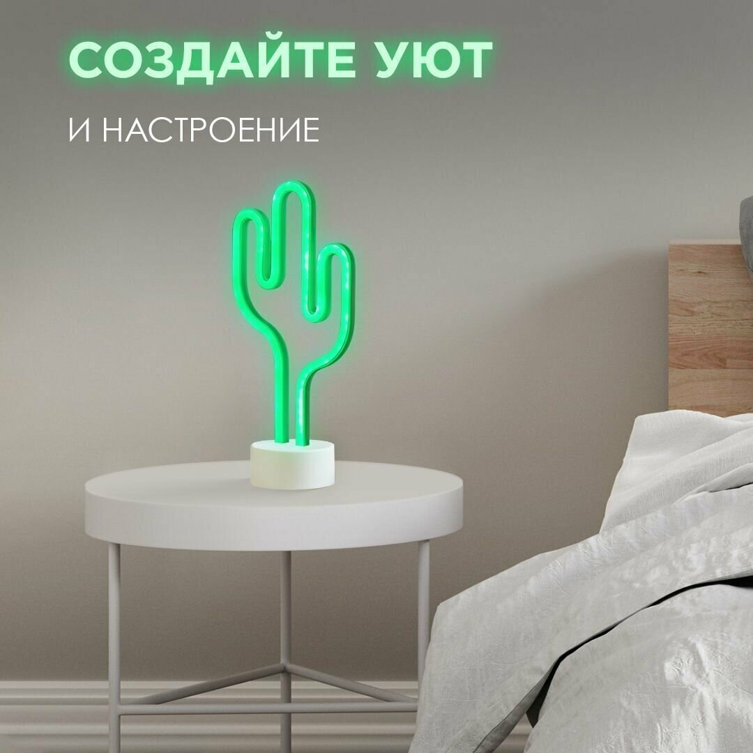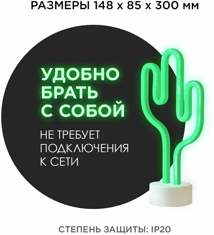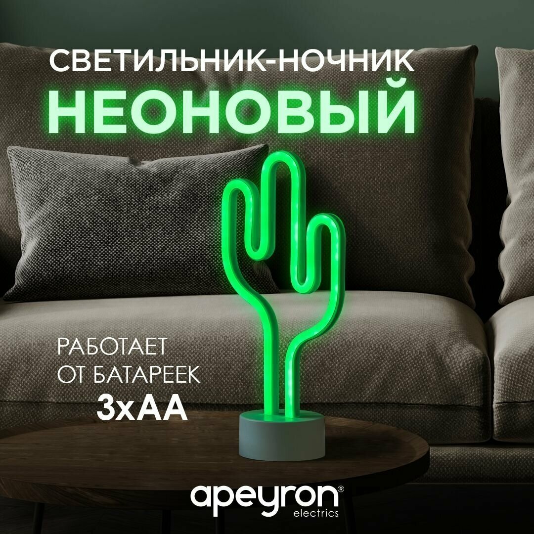 Светодиодный настольный неоновый светильник Apeyron Кактус, цвет свечения зеленый 12-67 интересное: